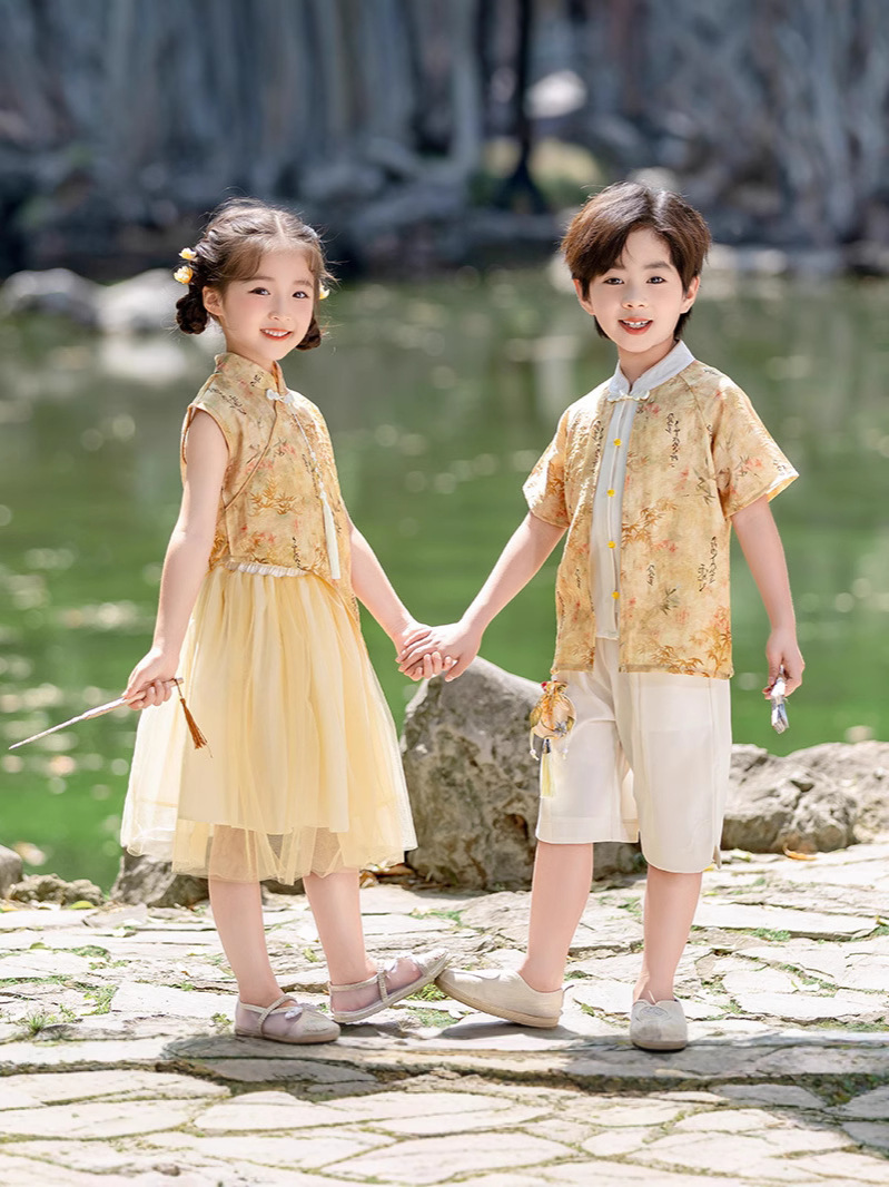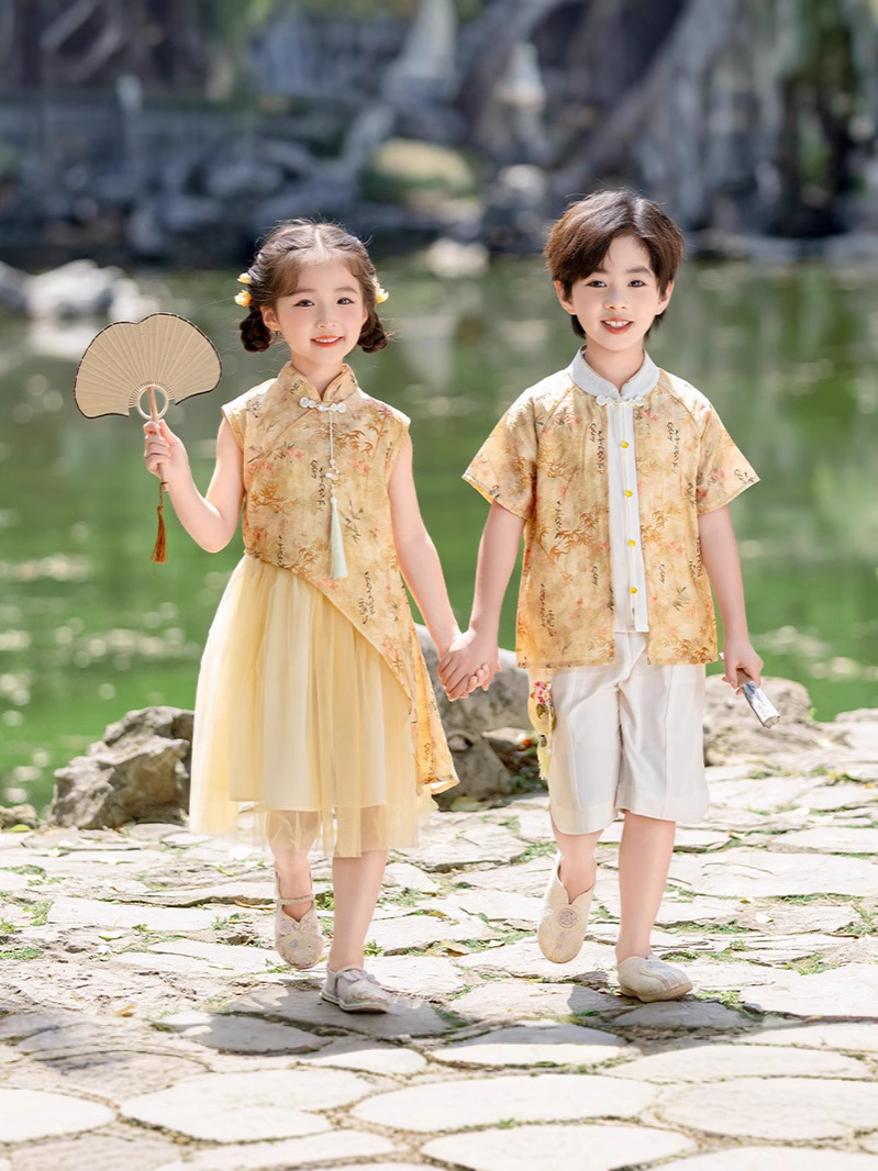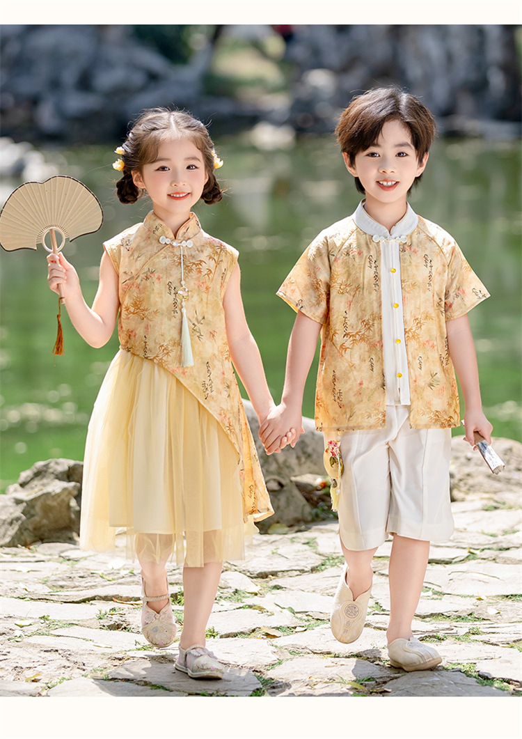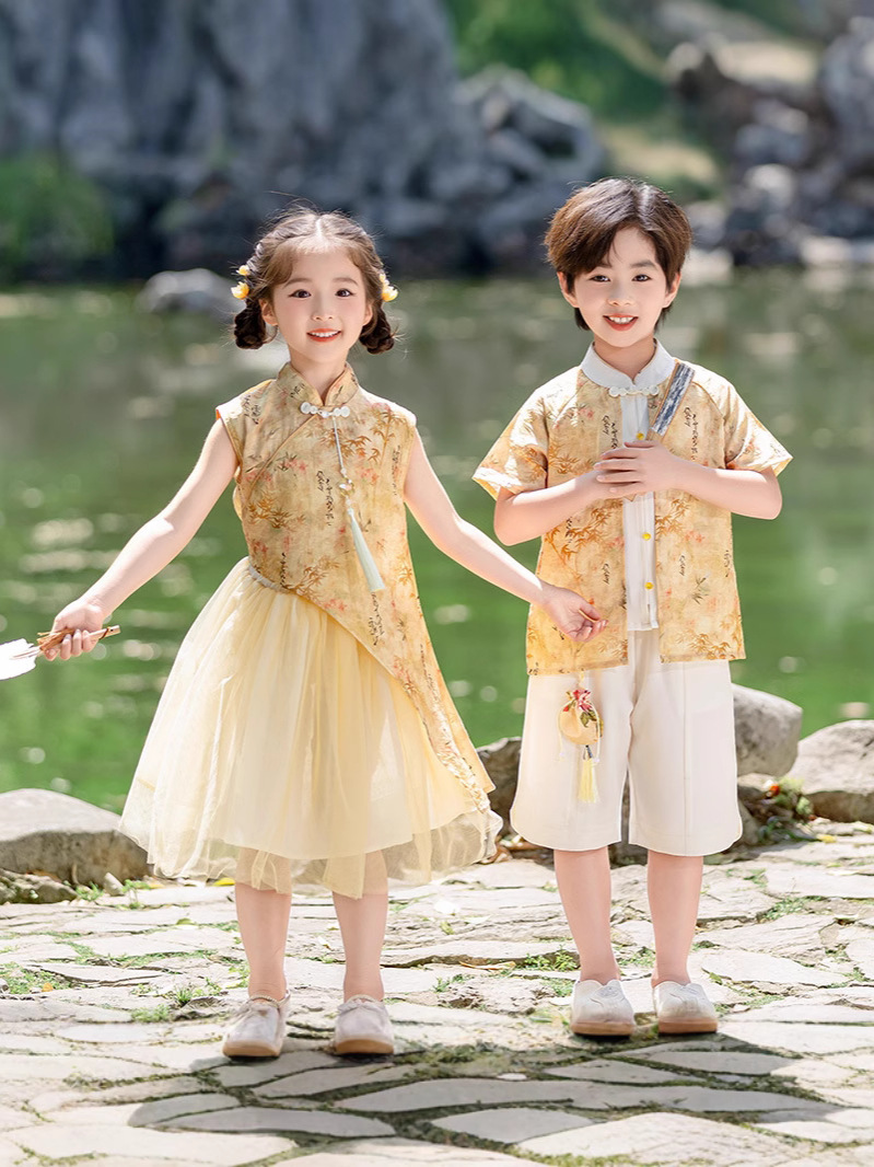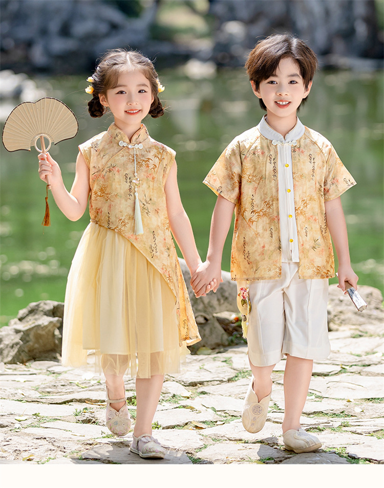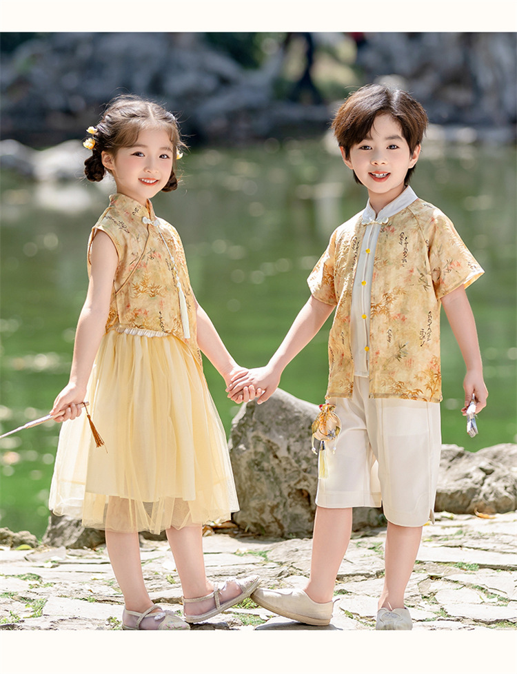 Детские платья для девочек династии Хань, одежда для выступлений в этническом стиле, костюмы для мальчиков из этнических меньшинств, танцевальные представления в детском саду.