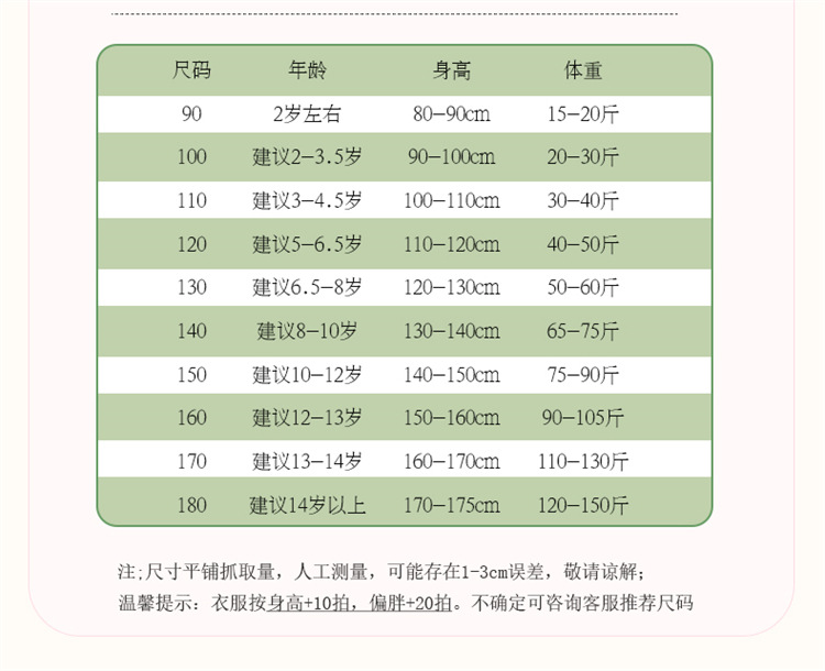 Дети (3–8 лет, рост 100–140 см)