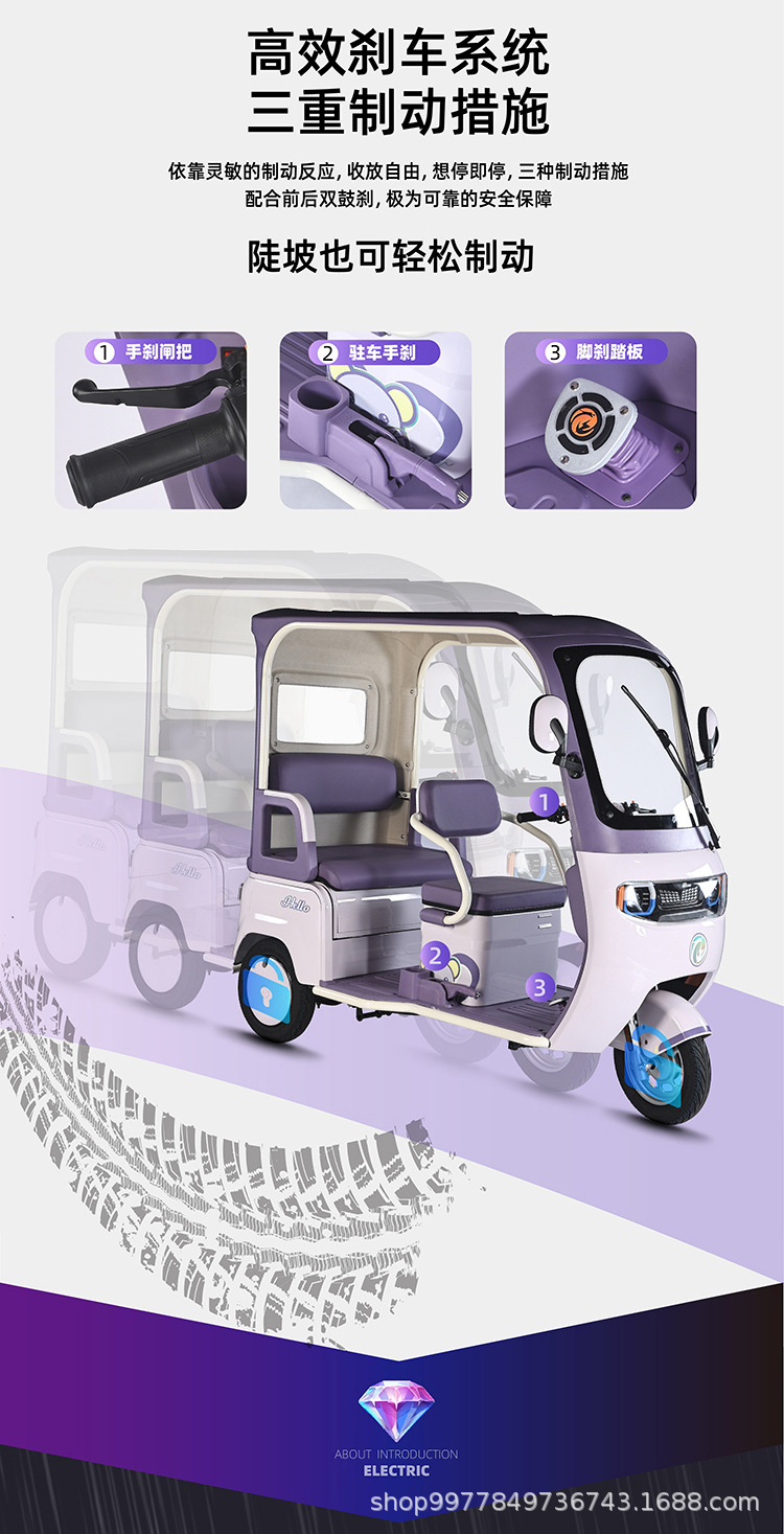 三轮车属大件商品,超出一切快递范围,只发物流,物流可以发到市或是县物流点,需要自取,如需送货到家,需要加送货费,请联系在线客服咨询送货费,所有车型价格都是不含物流费不含电池的,如需随车购买电池,请咨询在线客服,我们用的都是超威 或天能电池 质量保证!!!