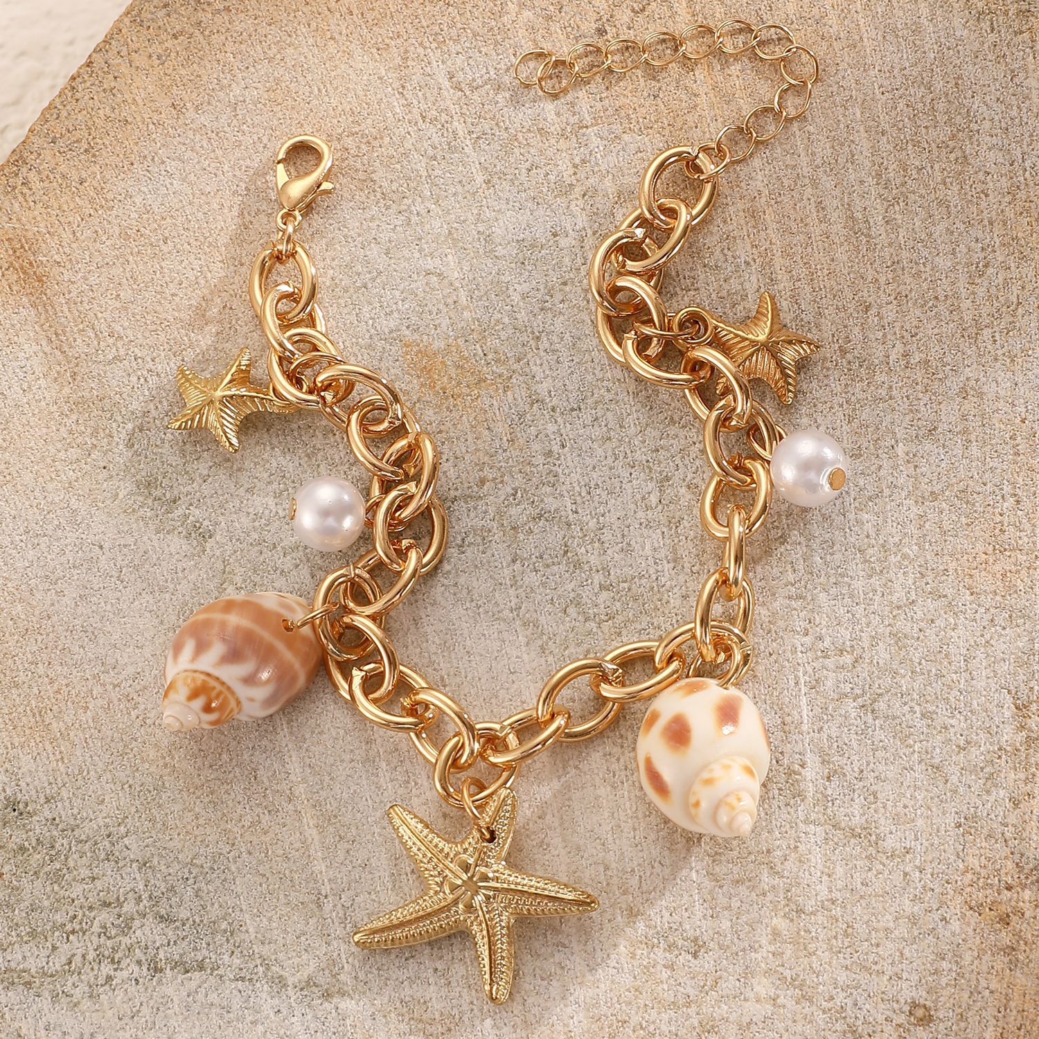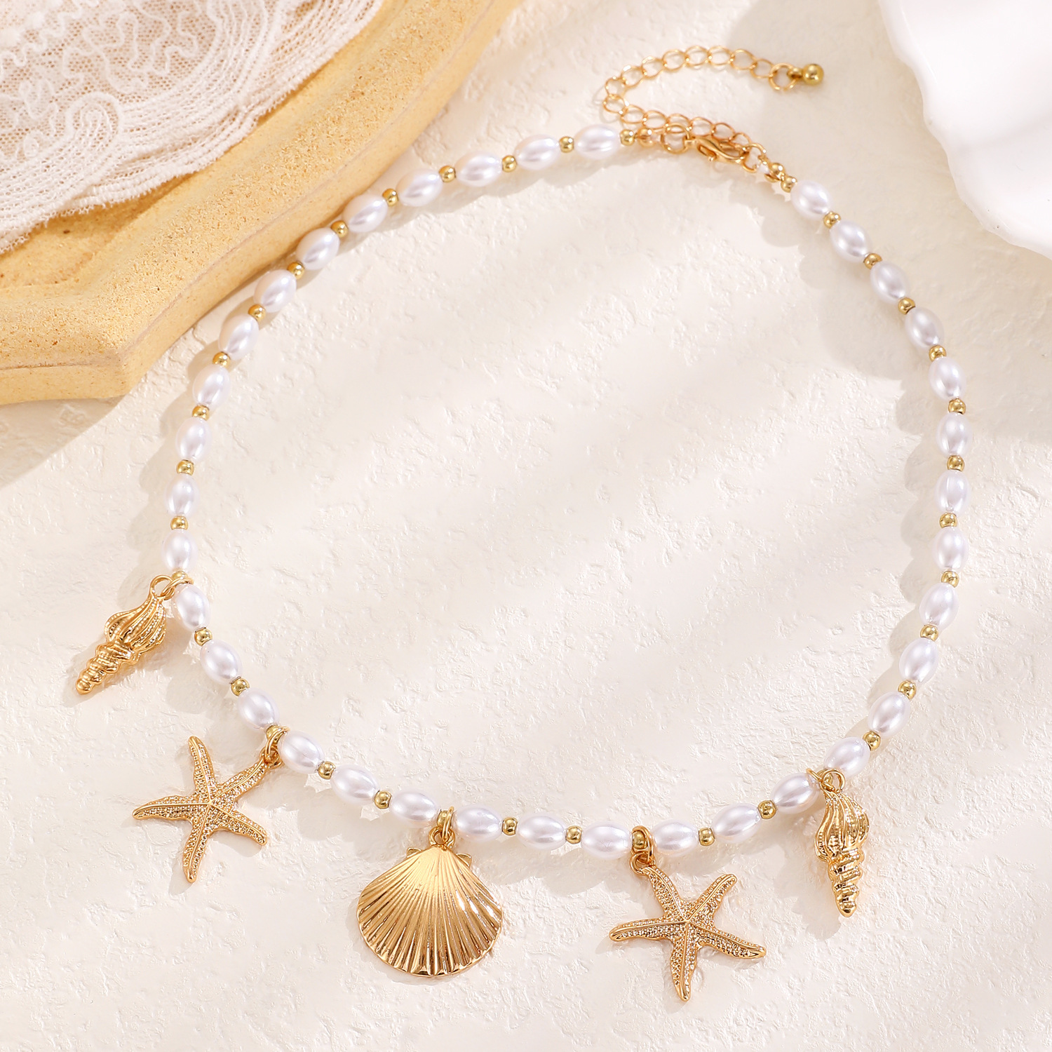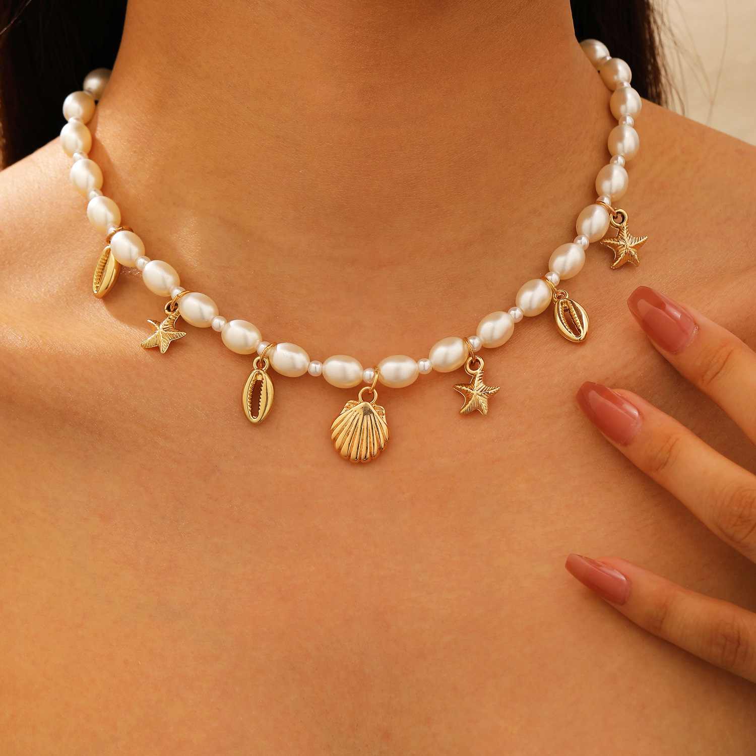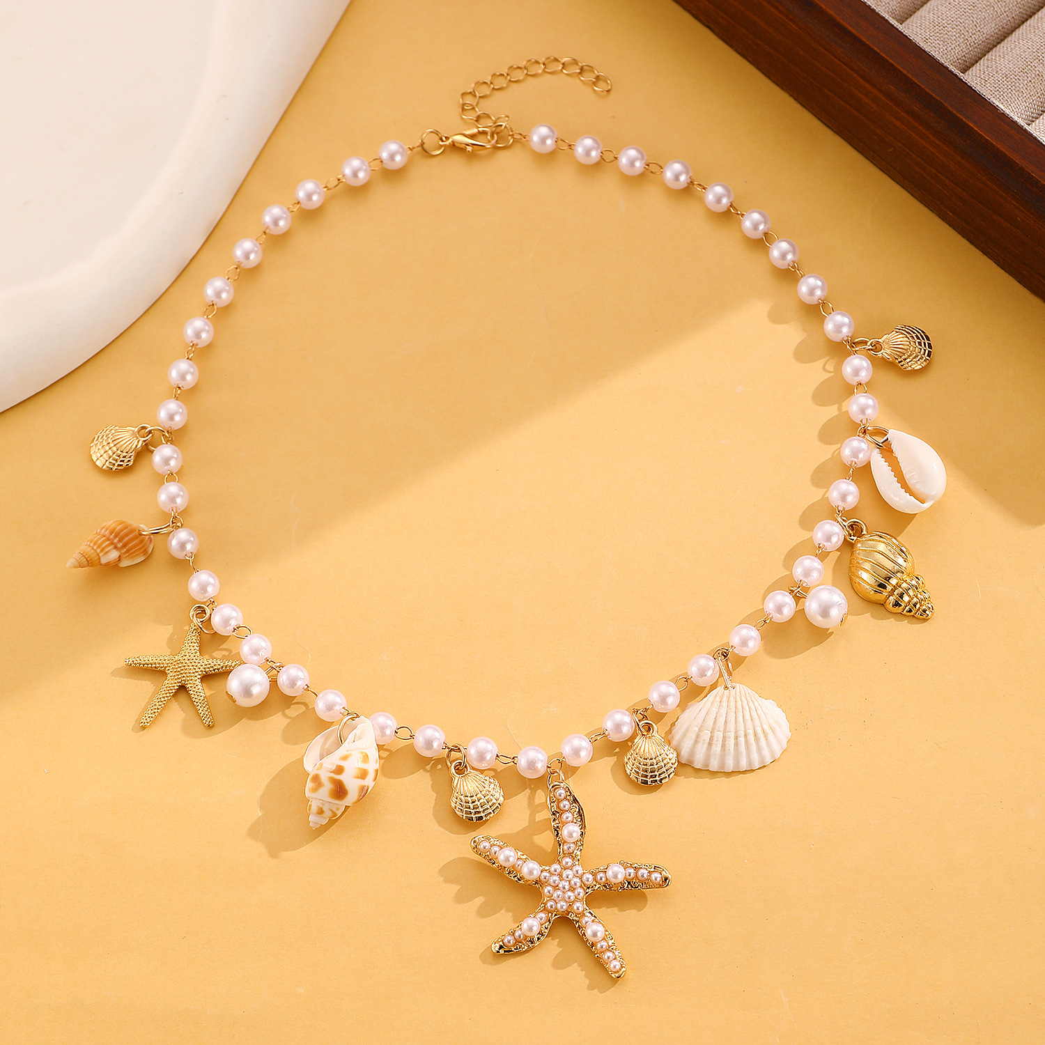 Богемская летняя пляжная оболочка ключица цепь нишевые приморские имитационные жемчужные морские звезды раковины браслет ожерелье
