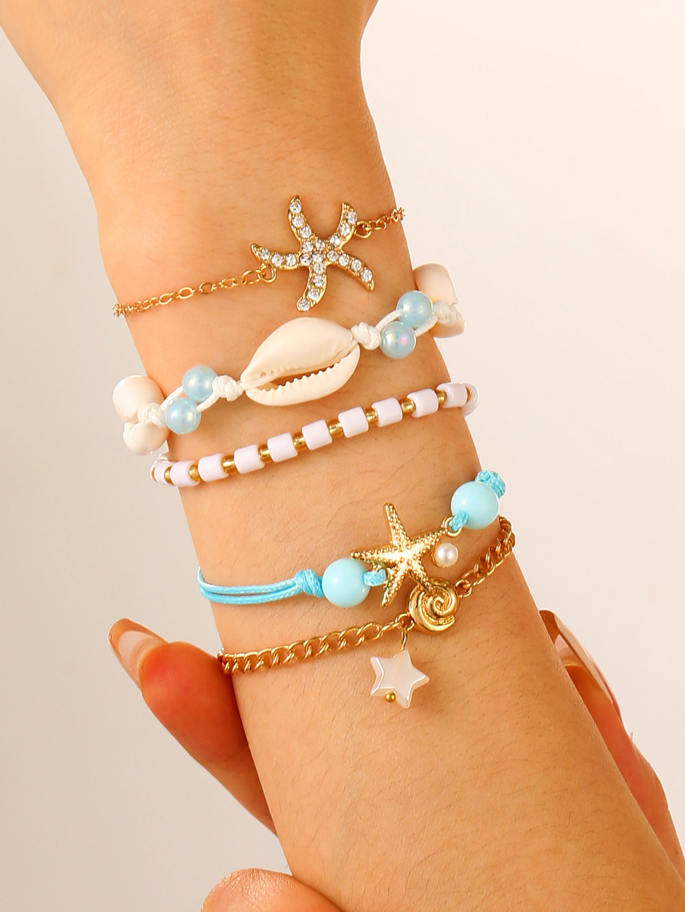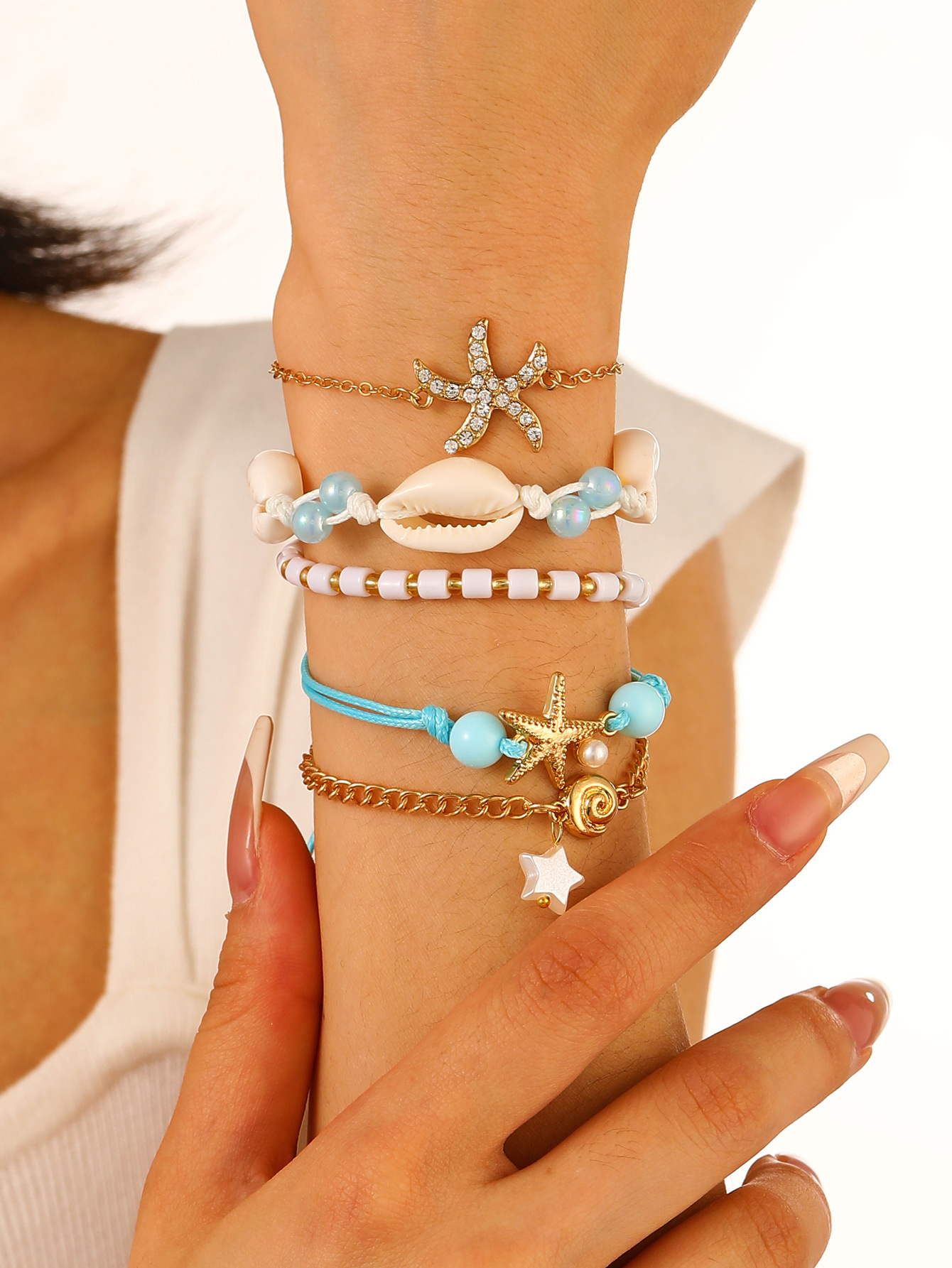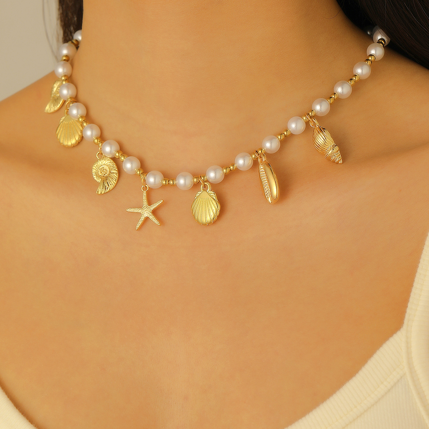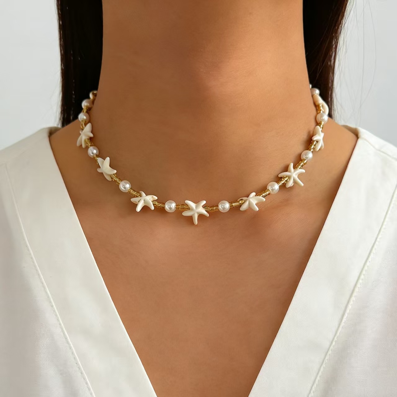 Богемская летняя пляжная оболочка ключица цепь нишевые приморские имитационные жемчужные морские звезды раковины браслет ожерелье