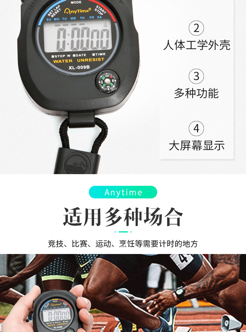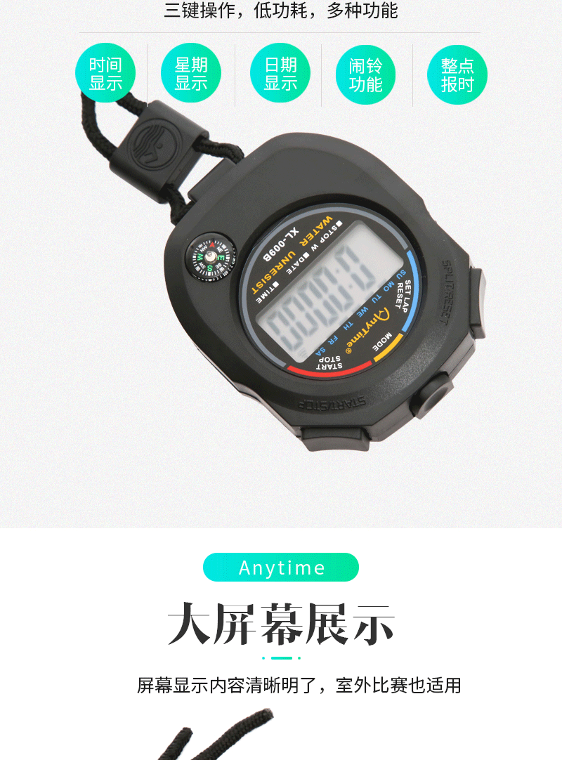 Многофункциональный секундомер Таймер 009 Два тренера Фитнес Электронный секундомер Водонепроницаемый Тренировка игры с компасом