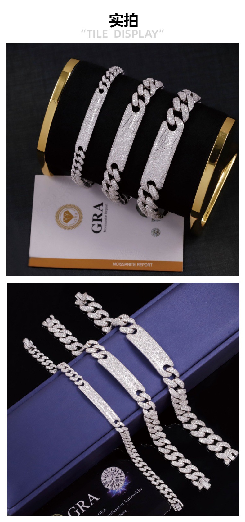 Европейский и американский браслет в новом стиле, кубинский браслет из серебра S925 с инкрустацией из муассанита, в стиле хип-хоп, модный, с пружинной застежкой, мужской браслет.
