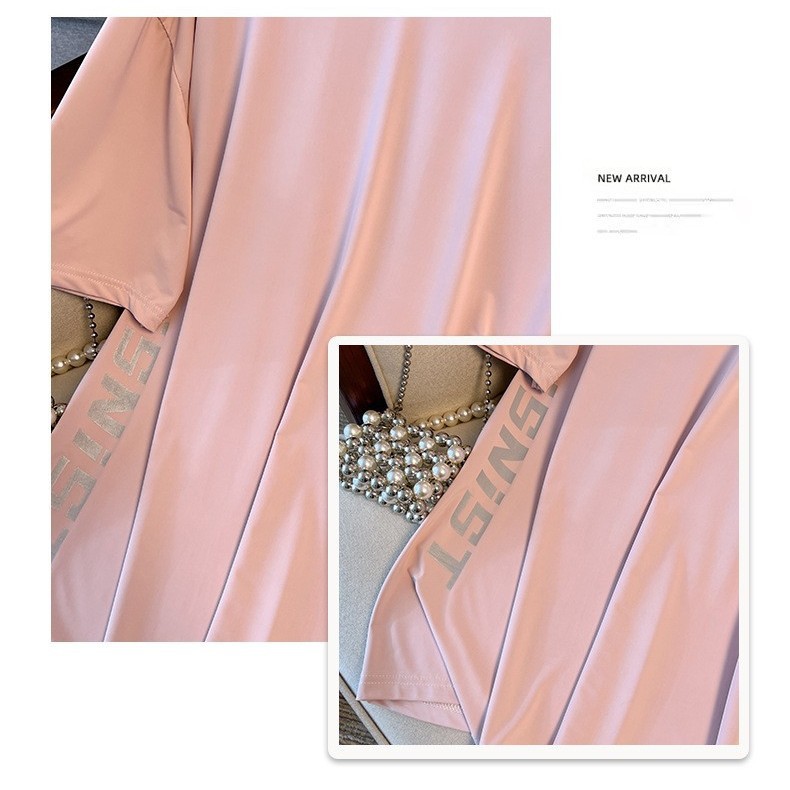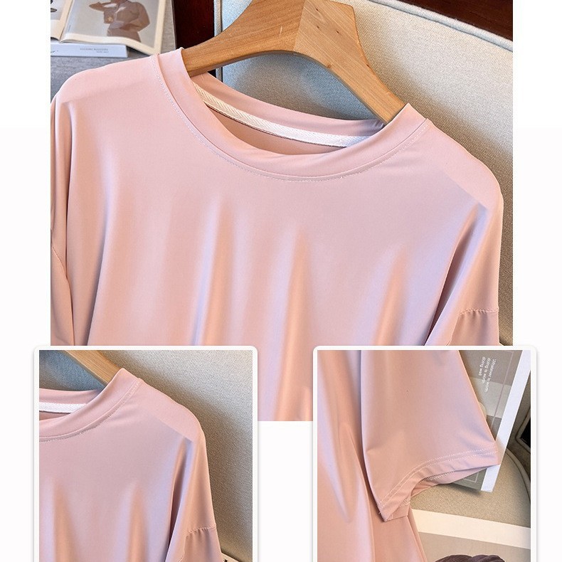 2025 лето 300 фунтов толстый MM большой размер свободного сушки повседневная футболка с ледяным шелком с круглым вырезом с короткими рукавами для женщин
