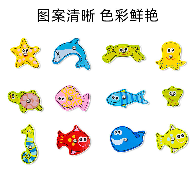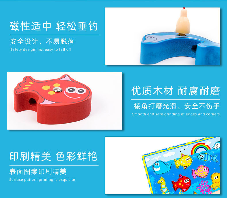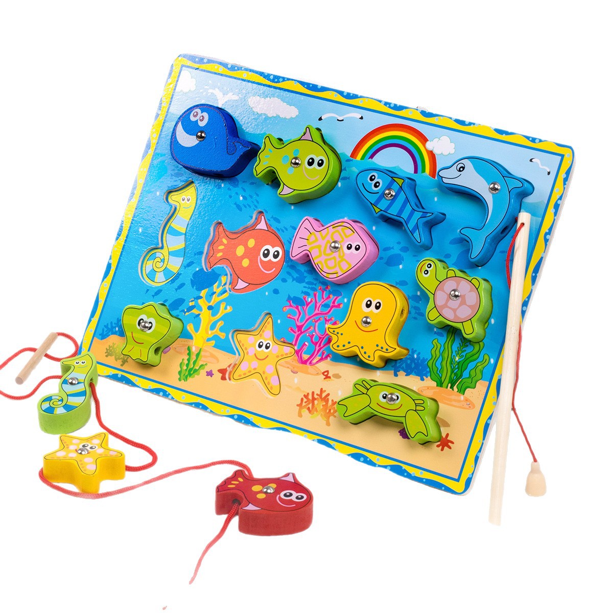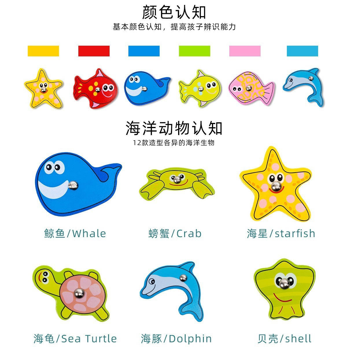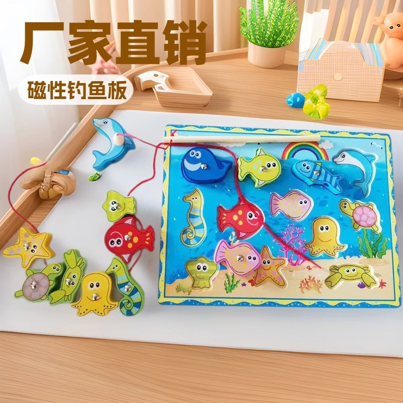 Деревянные игрушки для рыбалки для детей в возрасте от 0 до 3 лет, магнитная рыбка, мальчики и девочки, развивающие строительные блоки и головоломки для раннего образования.
