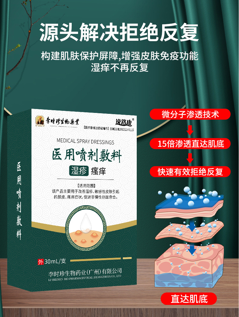 [Li Shizhen-Wet Itchy Skin Type] Медицинская спрей-повязка подходит для улучшения и облегчения чувствительной к экземе кожи.