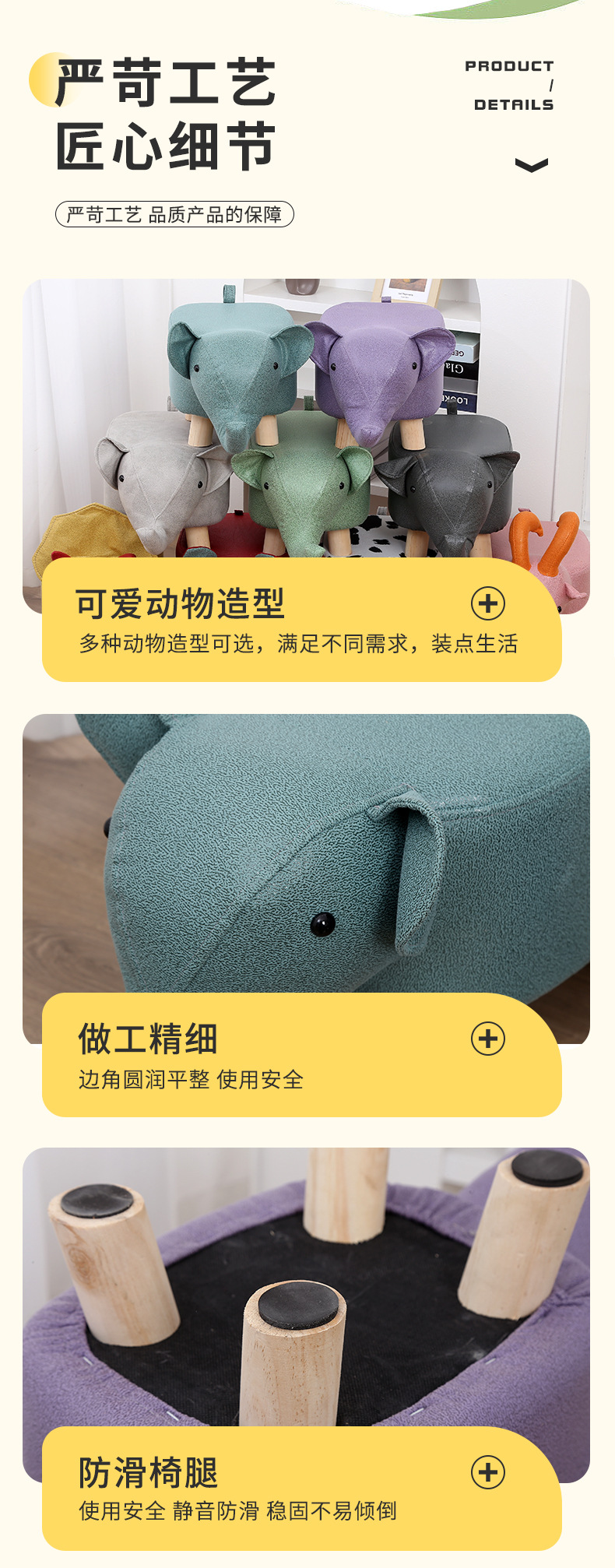 Мультяшные животные низкие табуретки трансграничные оптом можно напечатать логотип событие подарочный табурет технологии ткани маленькие слоны табурет для домашней обуви