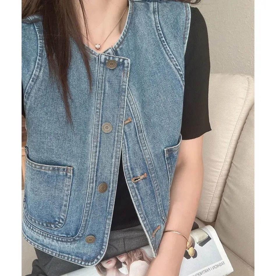 2025 ретро новый джинсовый жилет жилет