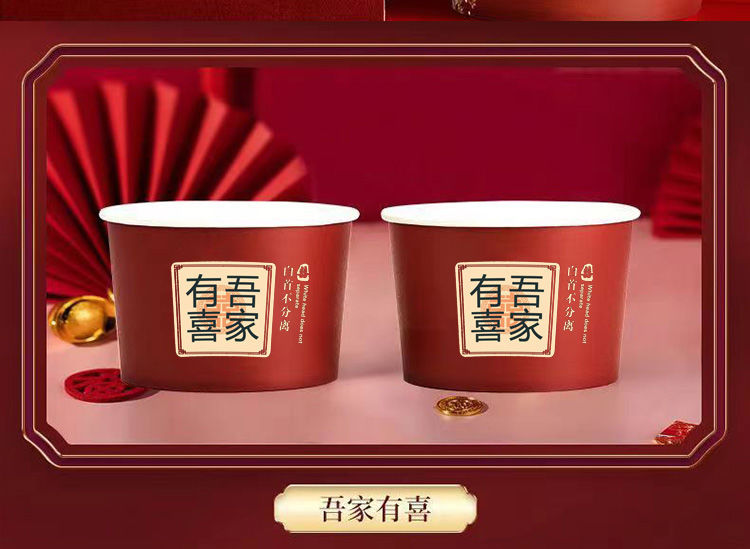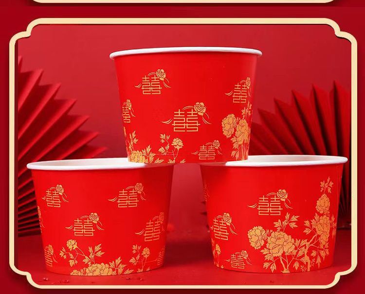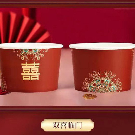 Утолщенная одноразовая бумажная миска двойное счастье банкет домашний ужин банкетная праздничная миска красная большая емкость 500 мл