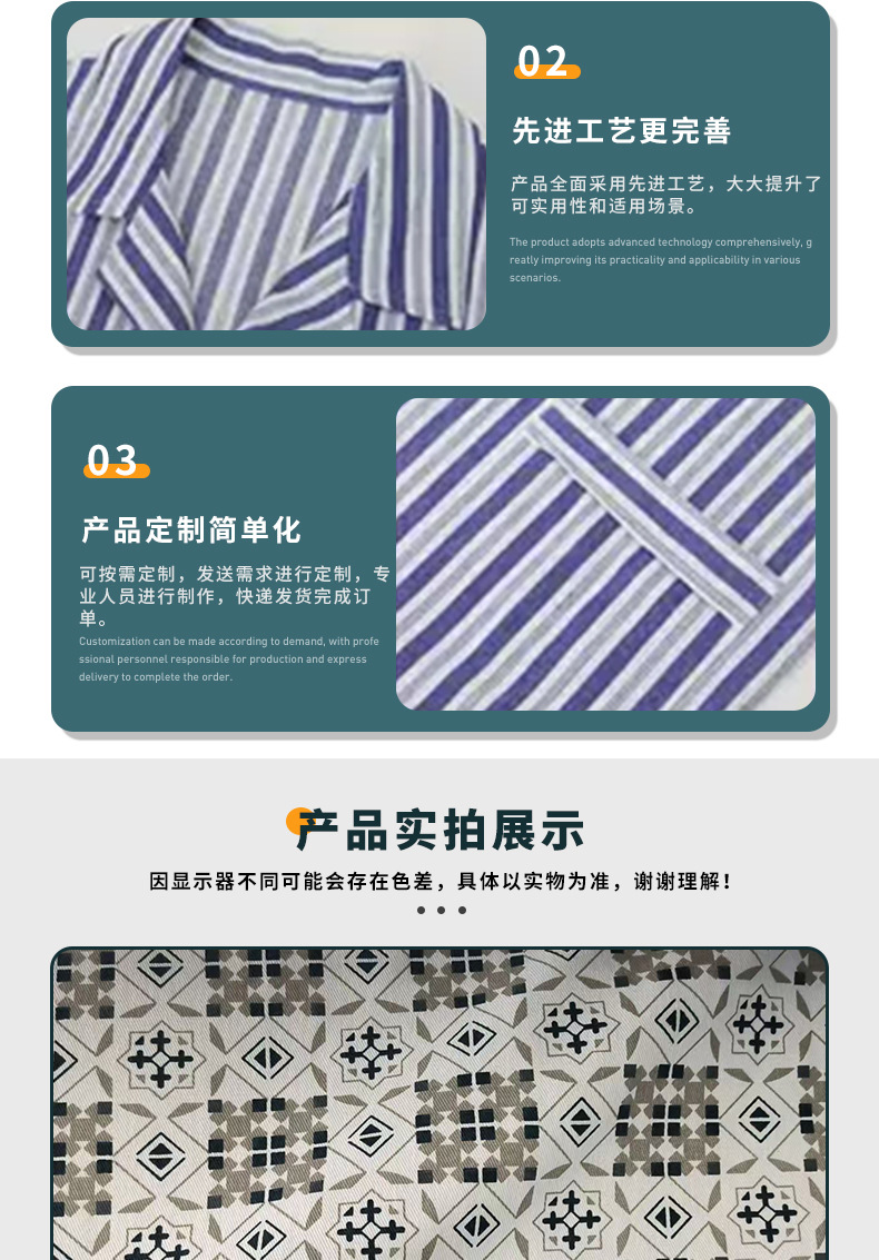 Топ и брюки из полиэстера в черную клетку с перекрестием; Топ и брюки из трехрядного полиэстера и хлопка в темно-синюю полоску.; Топ и брюки из трехрядного полиэстера и хлопка в светло-голубую полоску.; Топ и брюки из полиэстера и хлопка светло-розового цвета с корнем лотоса; Топ и брюки из полиэстера и хлопка в серо-красную полоску; Топ и брюки из полиэстера и хлопка в светло-голубую полоску.; Топ и брюки из полиэстера и хлопка в темно-синюю полоску; Верх и брюки из парусного полиэстера; Хлопковый топ и брюки в черную клетку с перекрестием; Топ и брюки из хлопка с трехстрочной сеткой в темно-синюю полоску; Топ и брюки из чистого хлопка в светло-голубую полоску, трехрядные.; Светло-розовые полоски из корня лотоса, топ и брюки из чистого хлопка.; Топ и брюки из хлопка в серо-красную полоску; Топ и брюки из хлопка в светло-голубую полоску; Топ и брюки из хлопка в темно-синюю полоску; Маленький парусник из чистого хлопка, топ и брюки; Синий и белый полосатый топ и брюки с длинными рукавами.