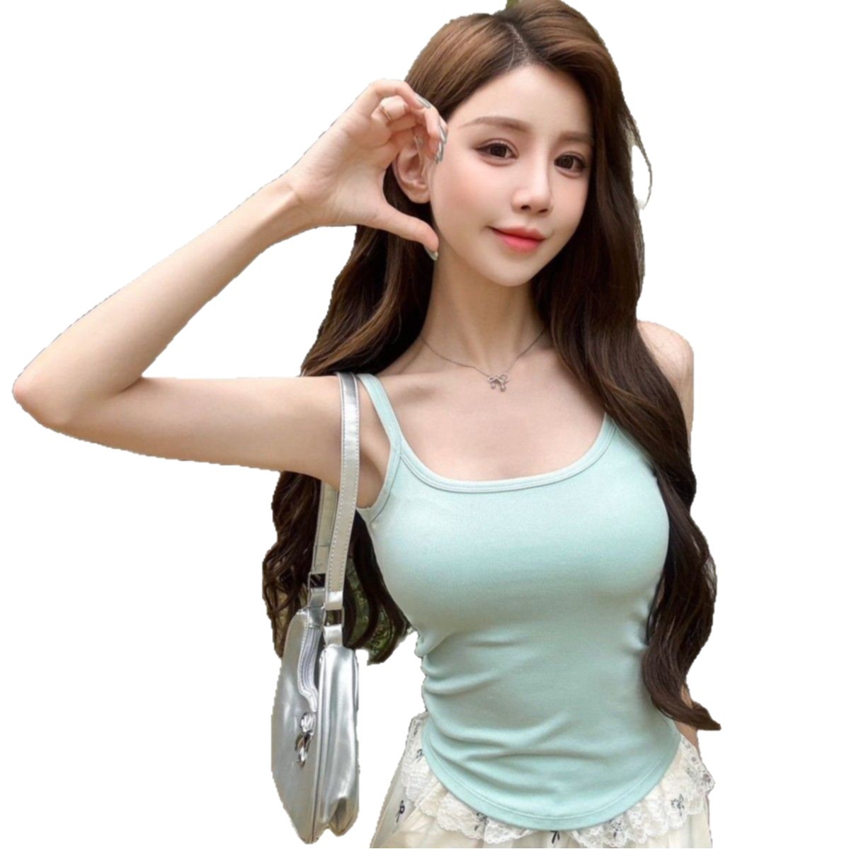 Качество версии дизайна Чувство исцеления талии Летний складчатый жилет латексный нагрудник допаминовый топ