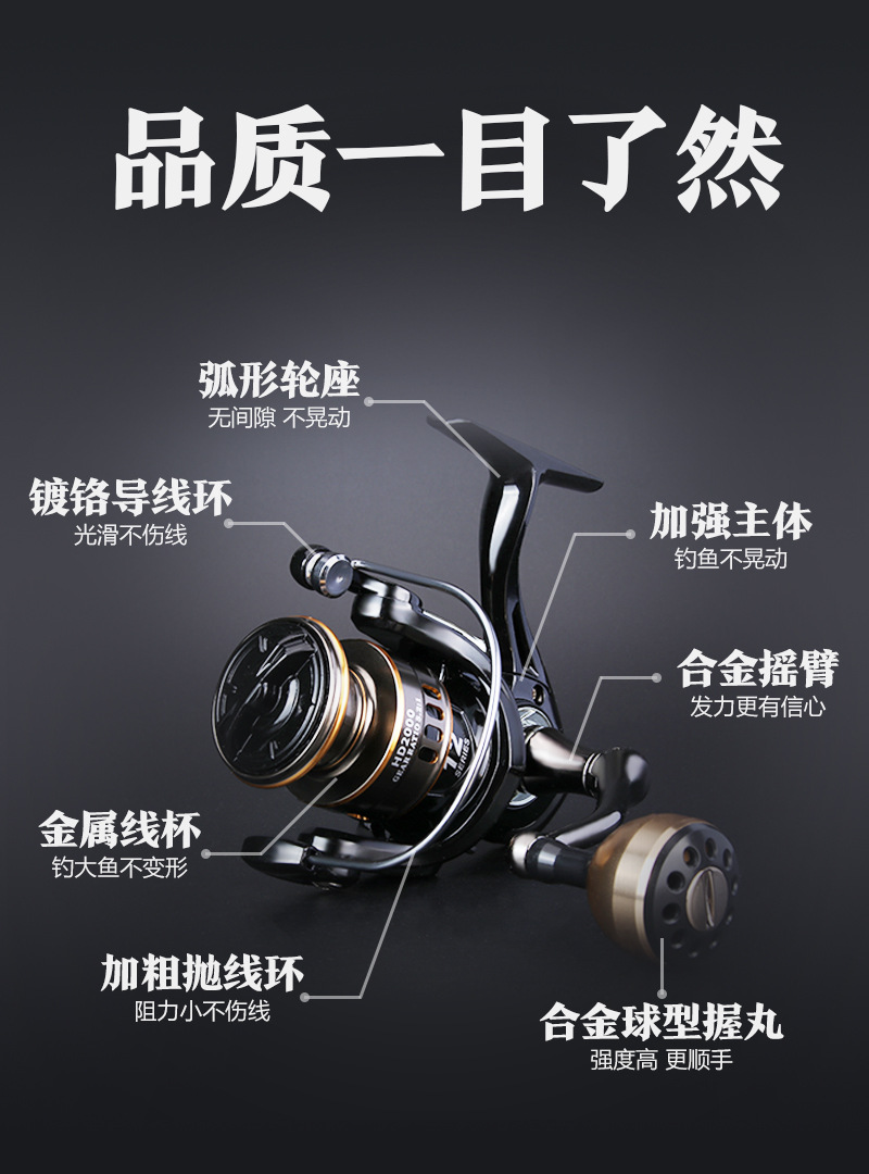 1、12-18KG强劲刹车系统,采用优品羊毛毡垫片,刹车力均匀不卡顿,轻松挑战大鱼。