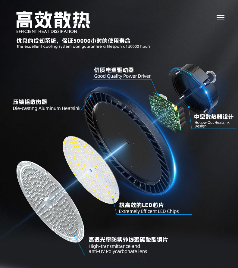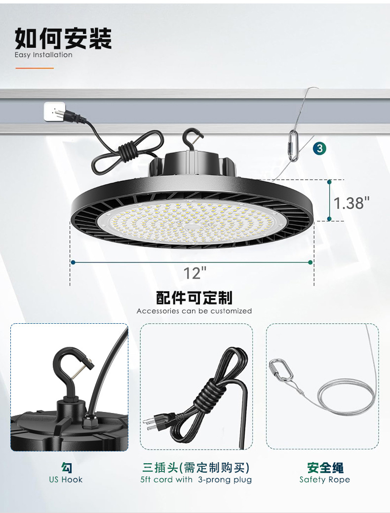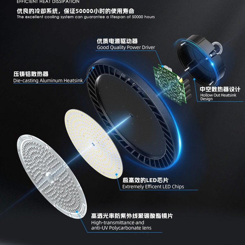 跨境LED飞碟灯高光效节能防水工厂仓库天棚照明厂房车间UFO工矿灯