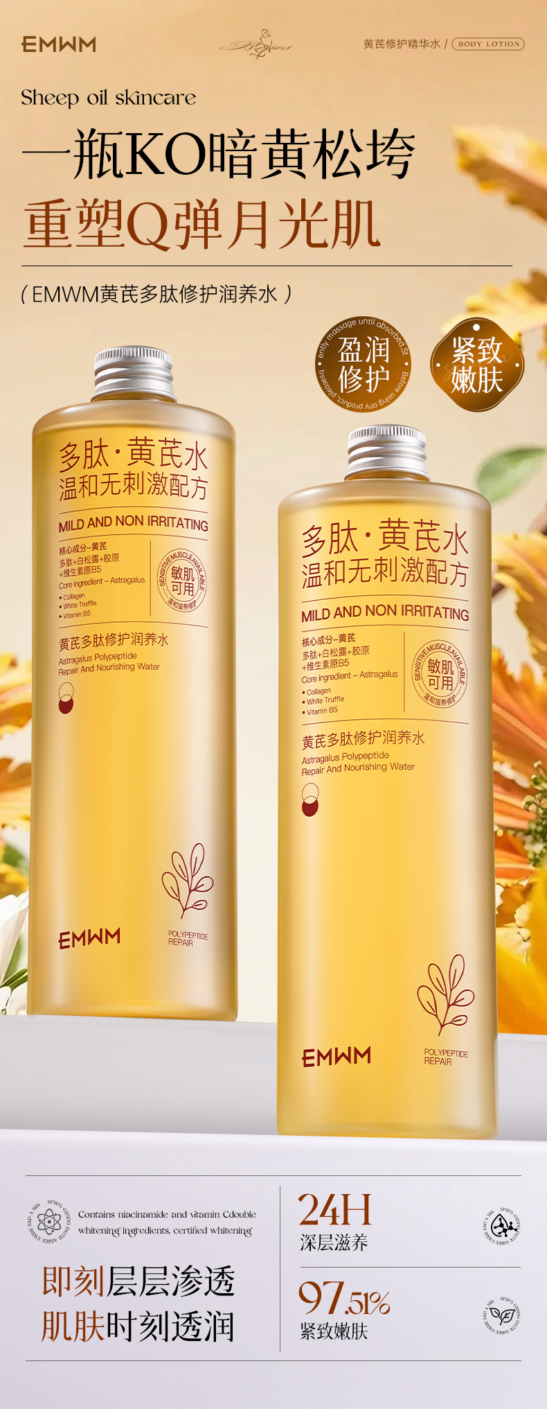 EMWM Astragalus Polypeptide Repair Увлажняющая вода 500 мл Увлажняющий лосьон Тоник перед макияжем Влажный компресс Осветляющий