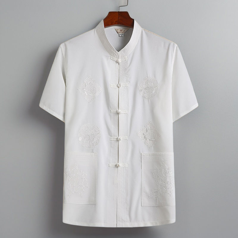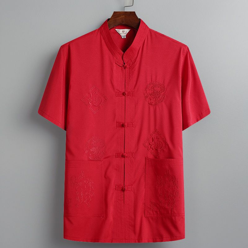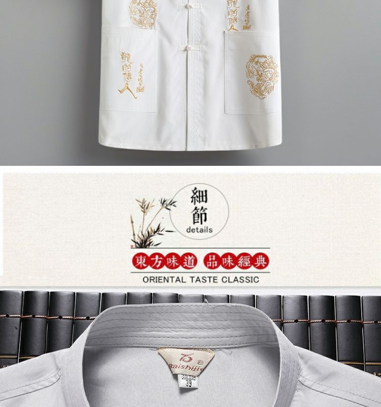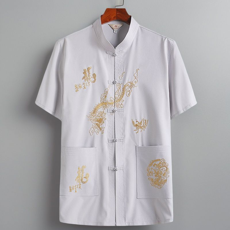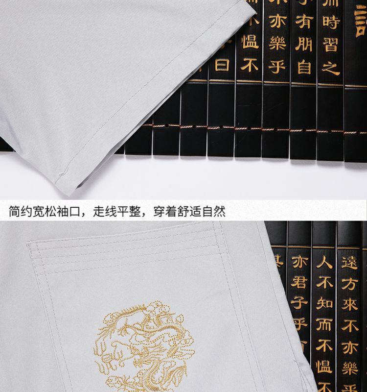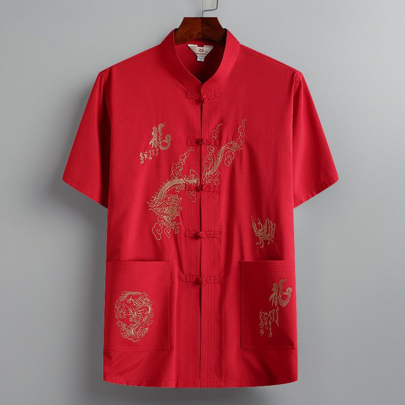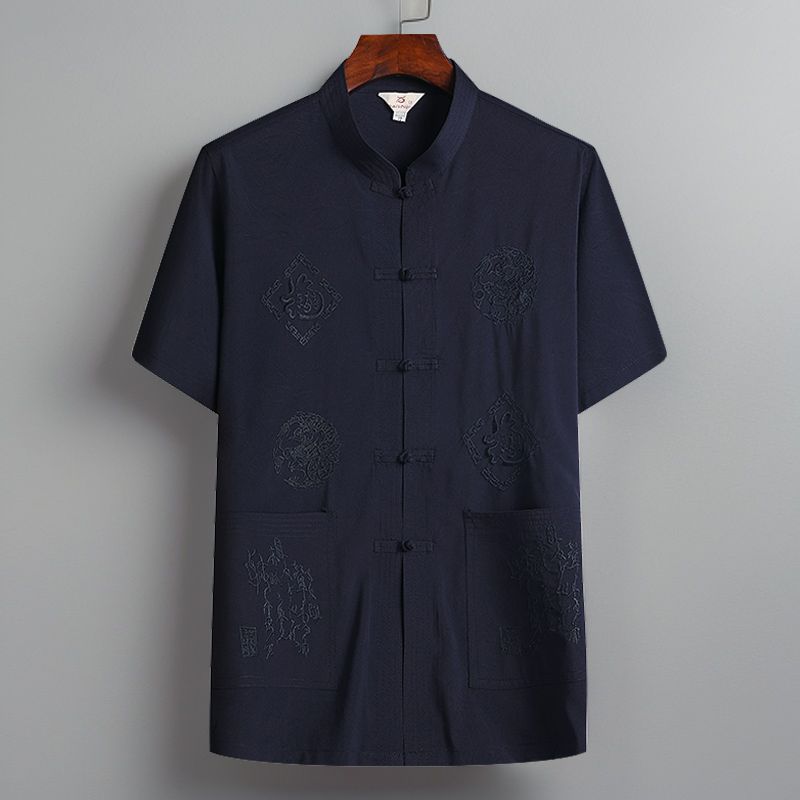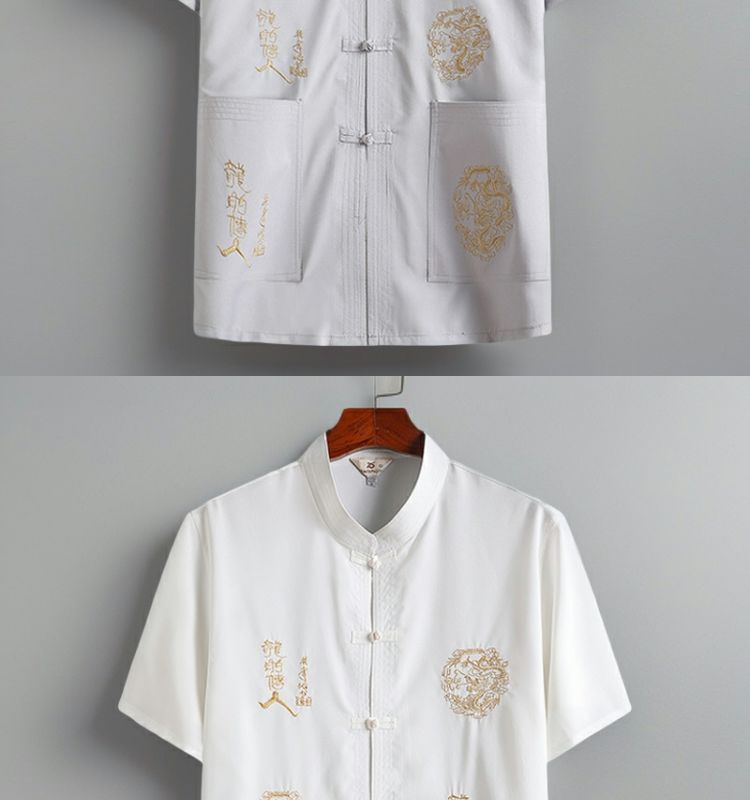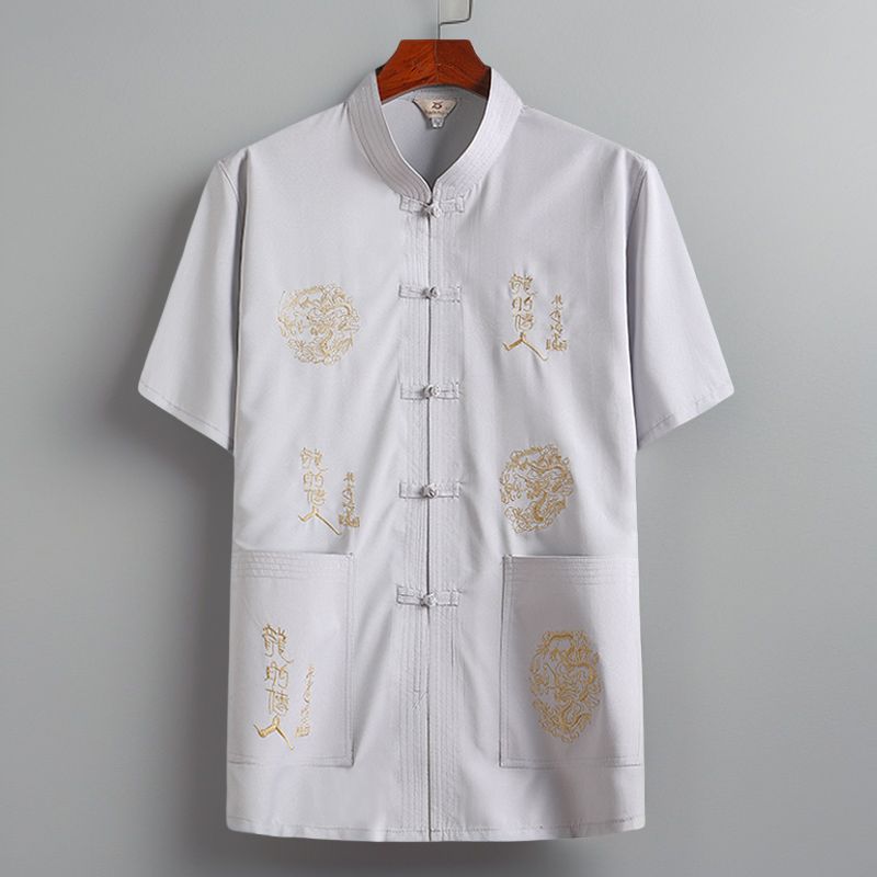 Летний мужской костюм Тан для мужчин среднего и пожилого возраста, папа с вышивкой дракона, китайский стиль, дедушка, мужская рубашка с короткими рукавами в этническом стиле Ханфу