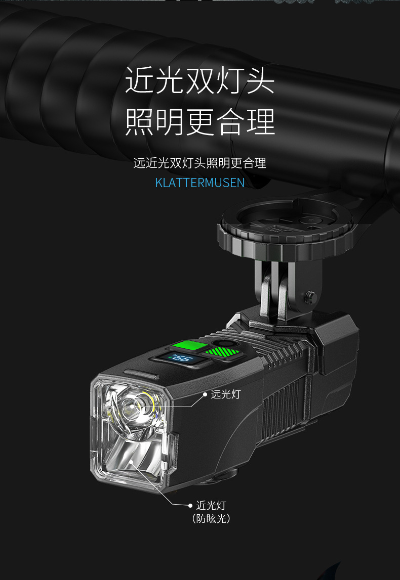 Многофункциональный уличный заряженный велосипедный фонарь с двумя источниками света для дальнего и ближнего света и велосипедный фонарь со свистком и многоуровневой регулировкой велосипедного фонаря.