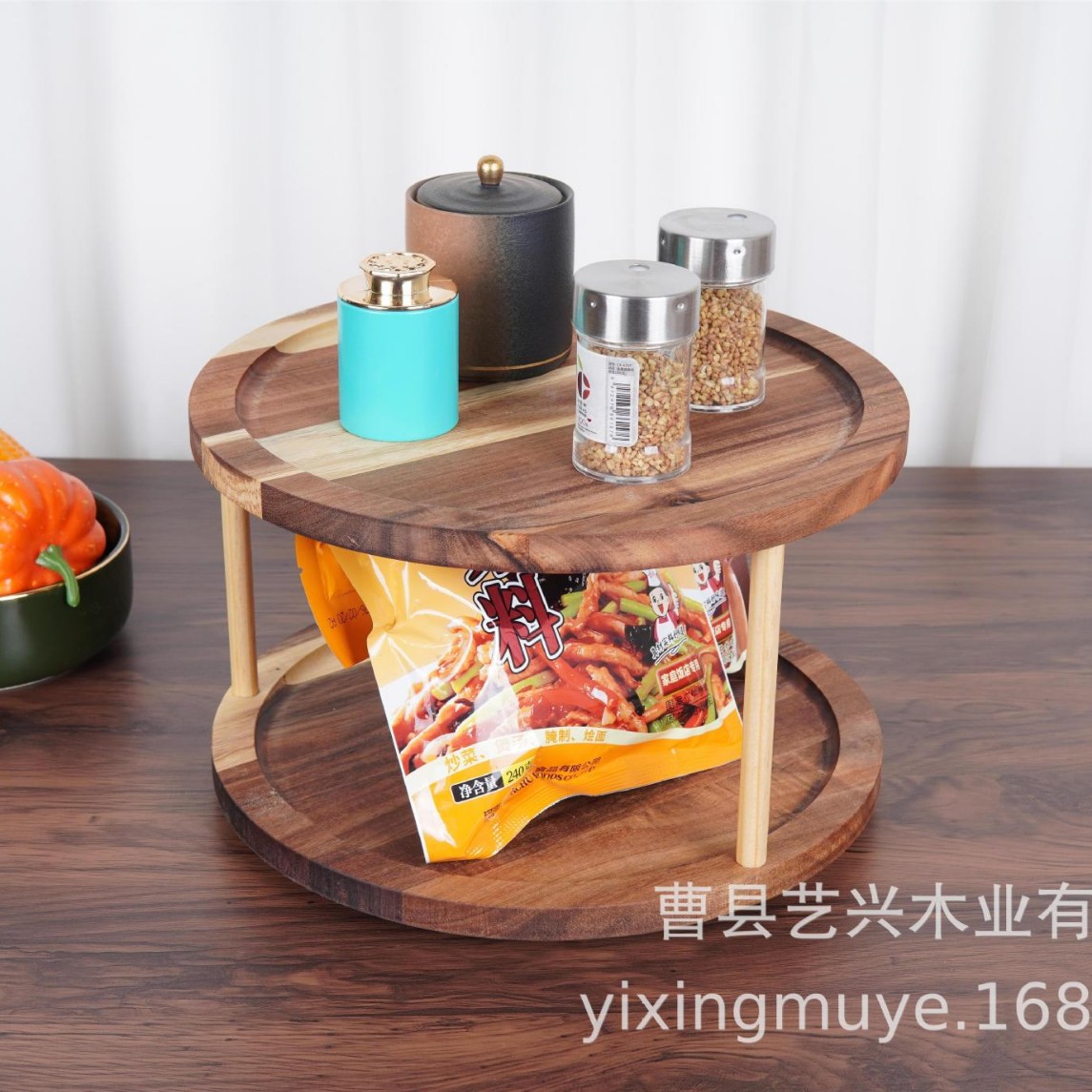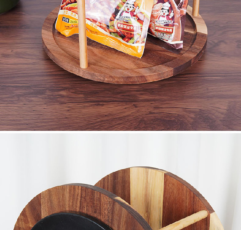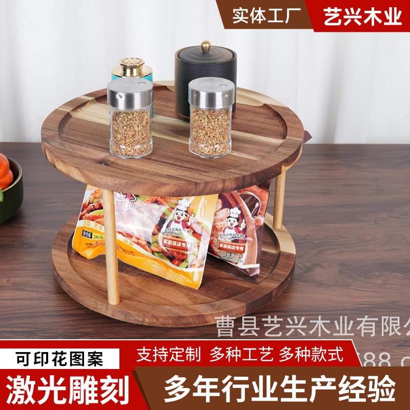Настольная вращающаяся подставка для специй из массива дерева, многофункциональная двухъярусная подставка для организации и хранения специй
