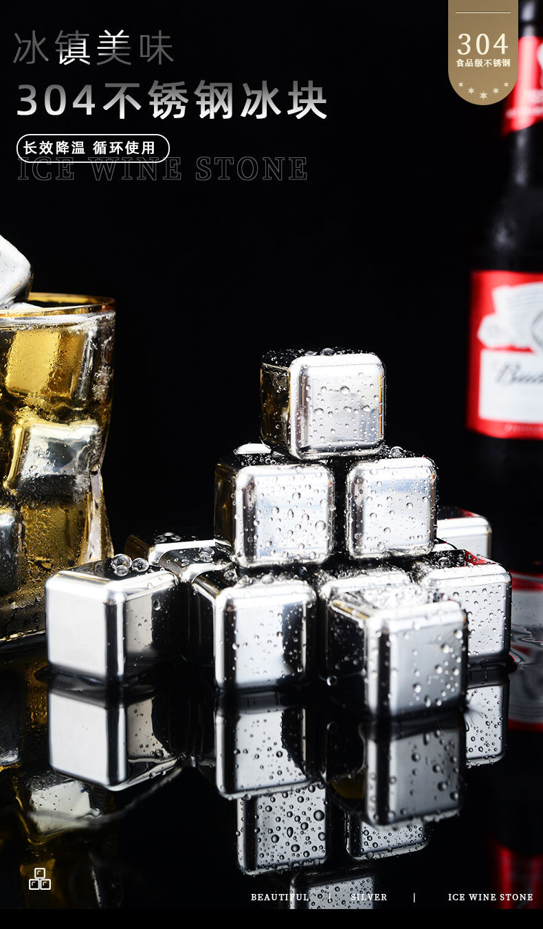 Кубики льда из нержавеющей стали 304, металлические квадратные кубики льда, камни для охлаждения вина, камни для охлаждения виски и красного вина, зеркальная полировка, пищевая сталь