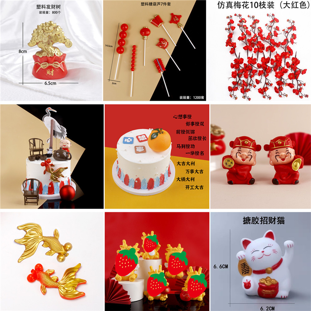 Новогодняя серия украшений для торта: счастливый кот, бог богатства, счастливый мешочек, кои, золотой бамбук, украшения для удачи и знаков зодиака