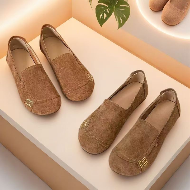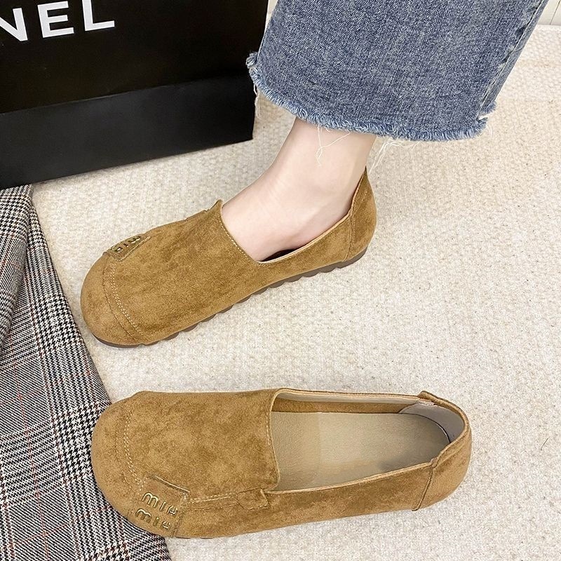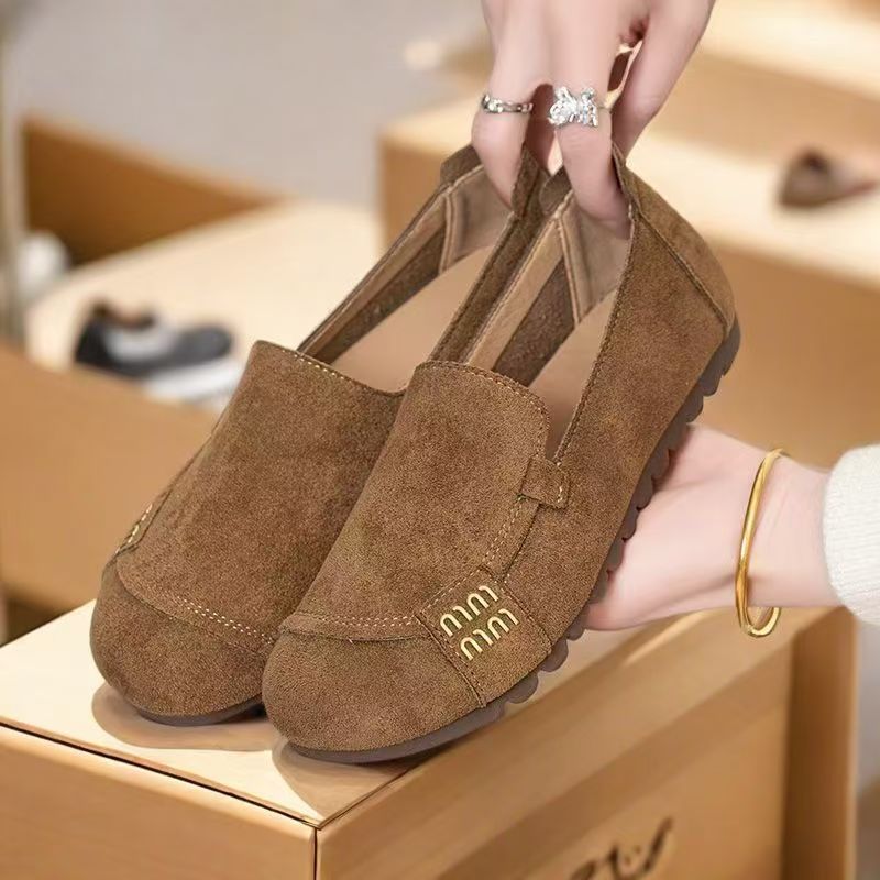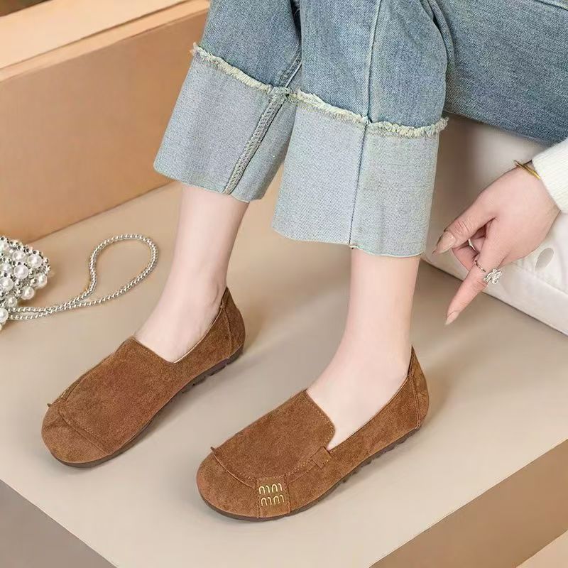 Плоская обувь из бобов 2025 новый матовый противоскользящий повседневный нескользящий мягкий подошв одиночные туфли женская мама рабочая обувь