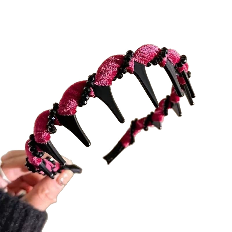 Бархатная повязка на голову со стразами для женщин, новая повязка на голову с волнистыми зубцами и высокой короной, инструмент для укладки волос, универсальный аксессуар для выхода в свет.