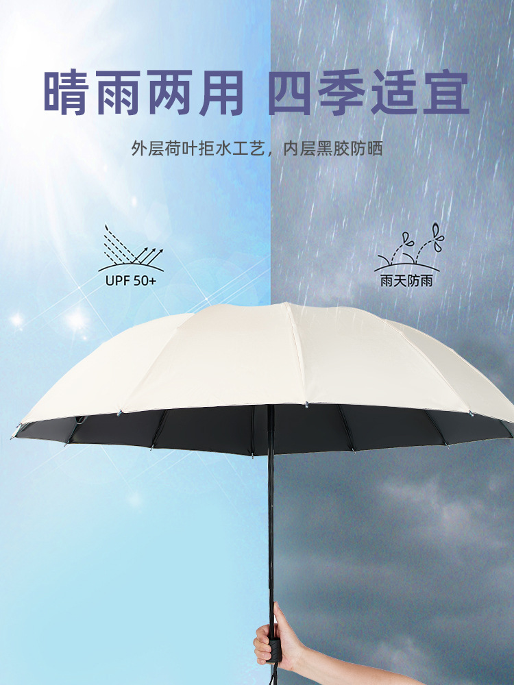 Черный резиновый зонт от дождя или солнца UF50+ [модернизированная модель]