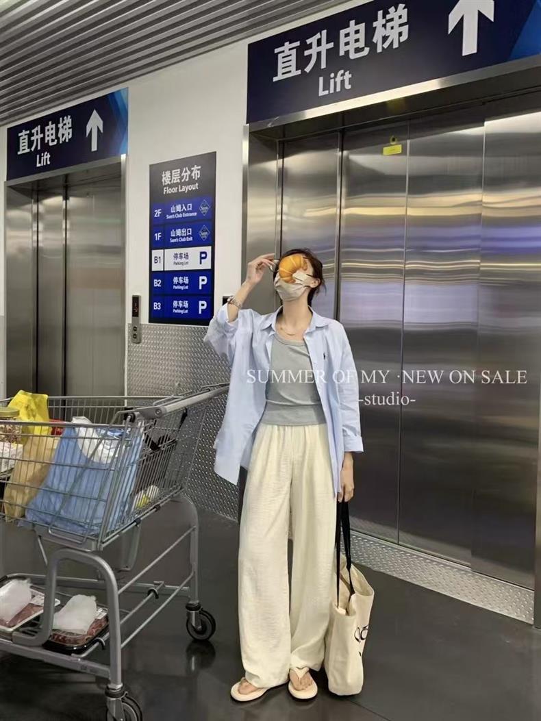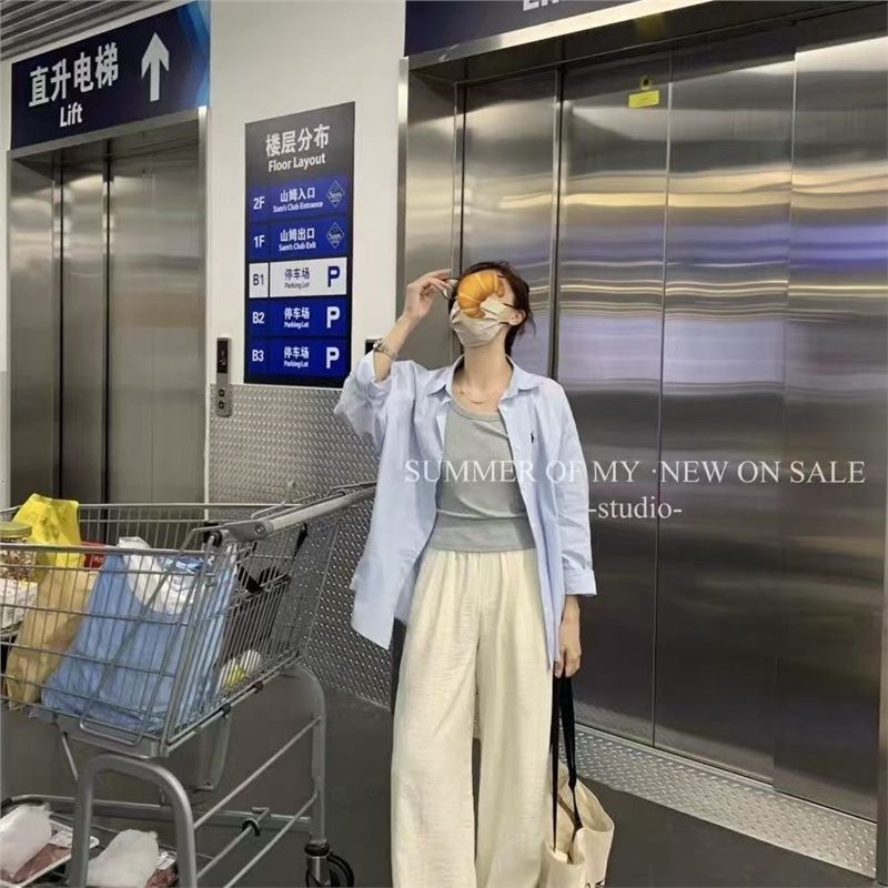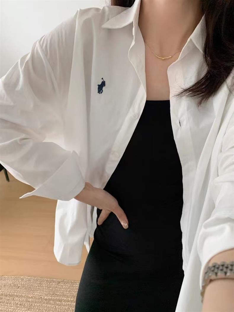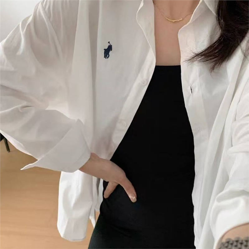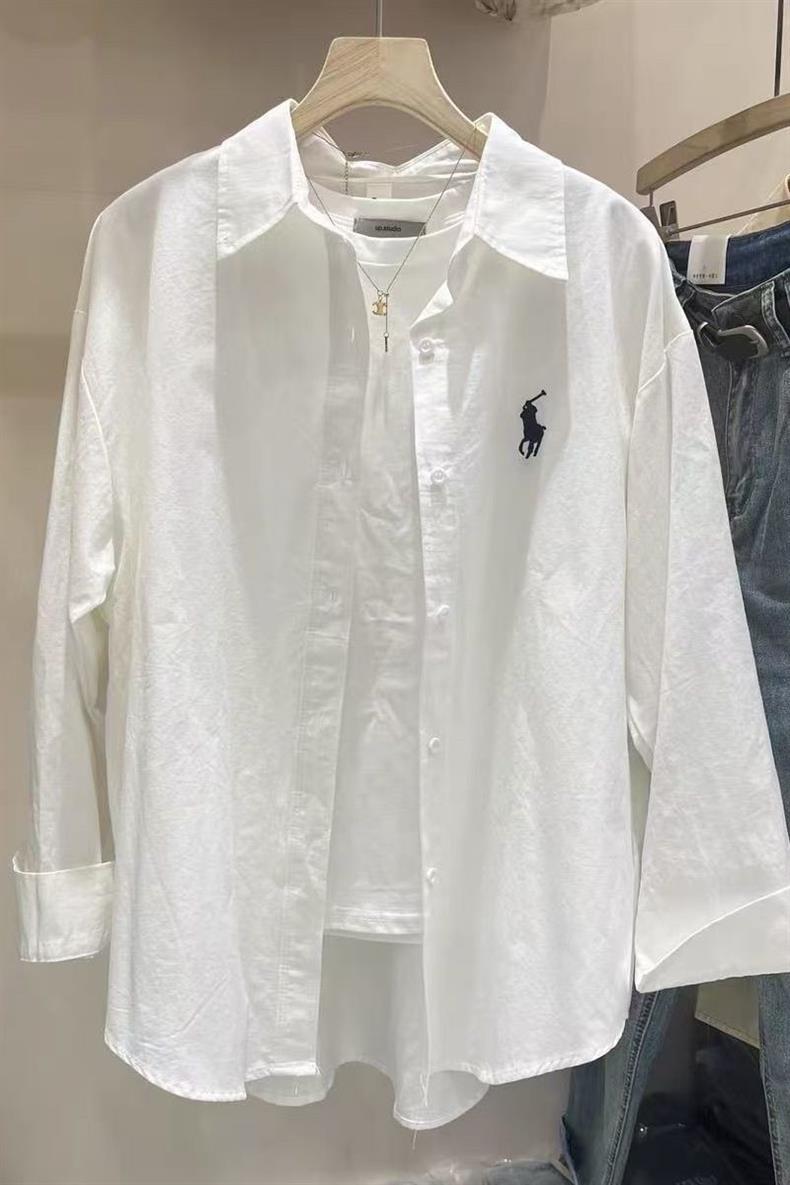 Повседневный синий свободный блузка топ 2024 корейская версия новая дикая вышивка с длинными рукавами рубашка пальто ins