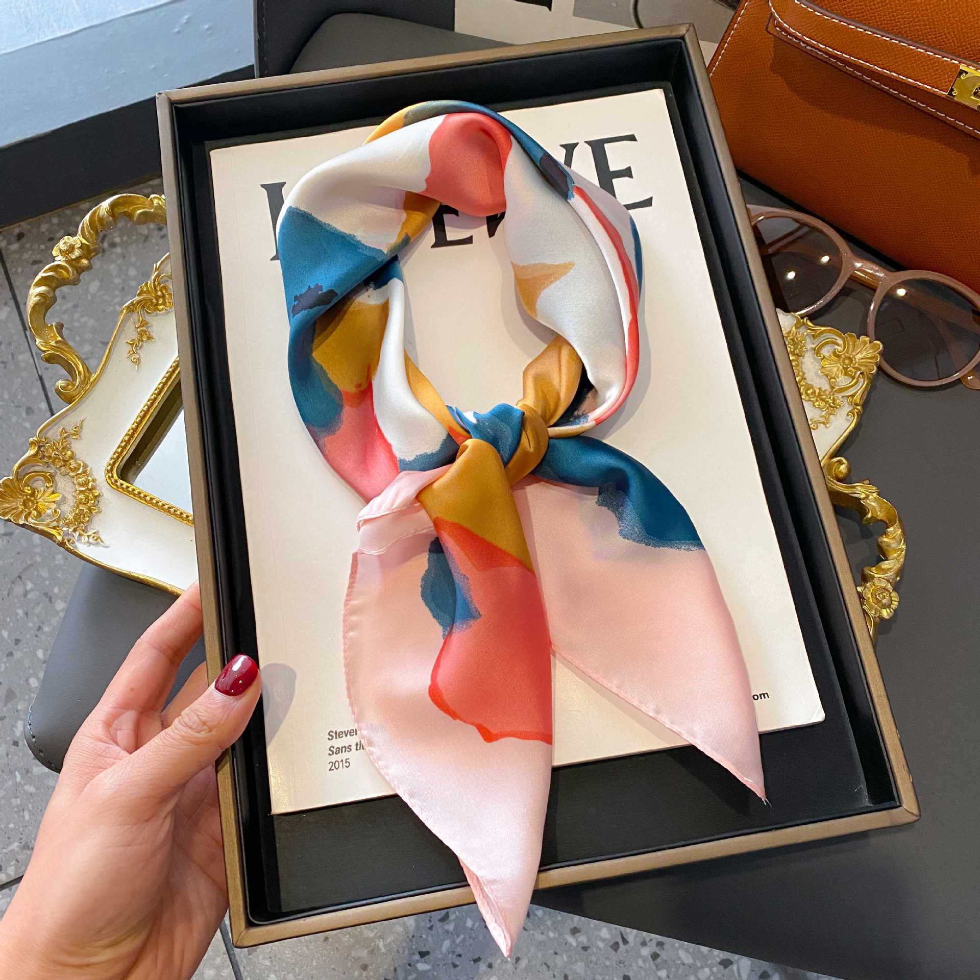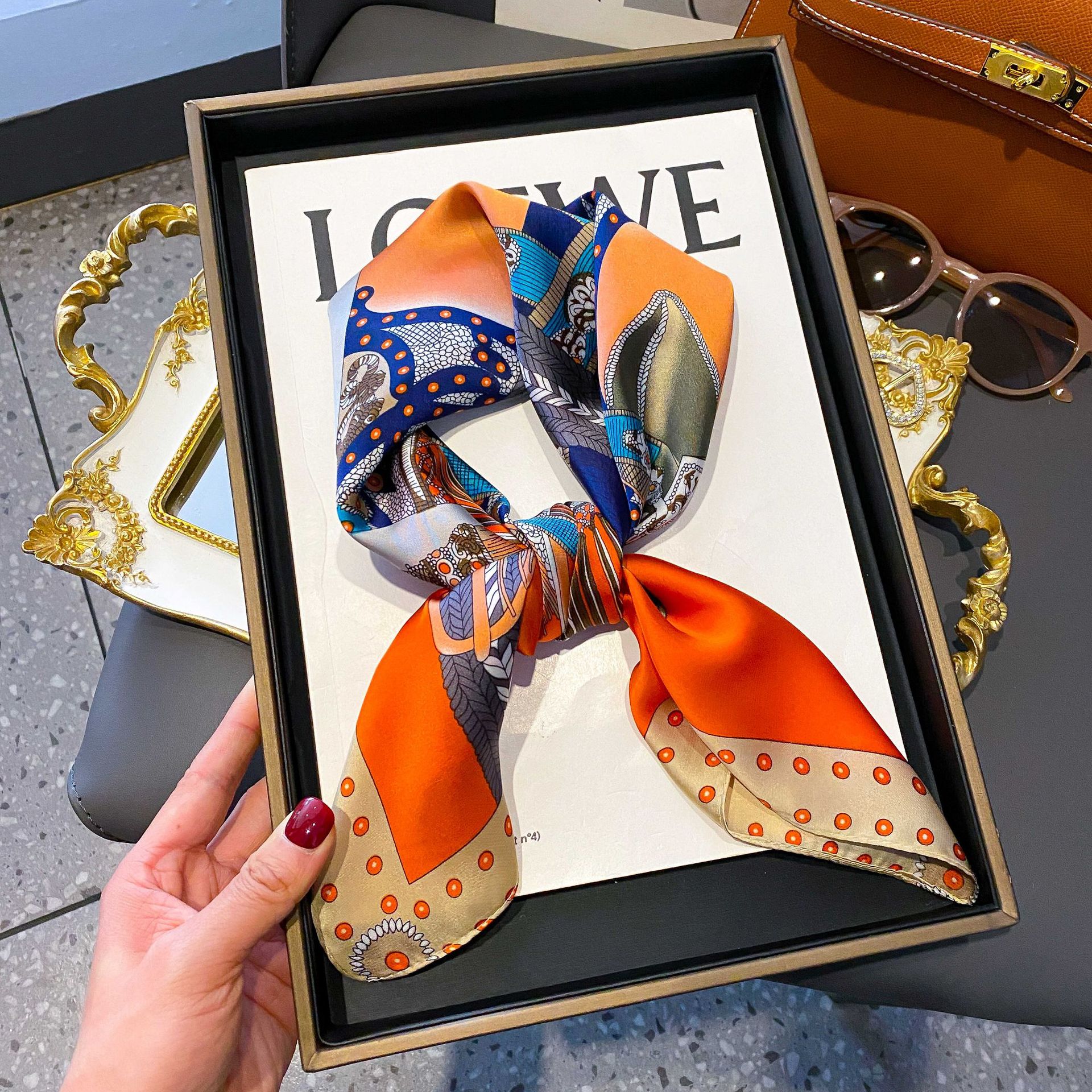 Коллекция маленьких квадратных шарфов 70*70, ретро и универсальные весенне-летние высококачественные женские профессиональные шарфы с принтом оптом.