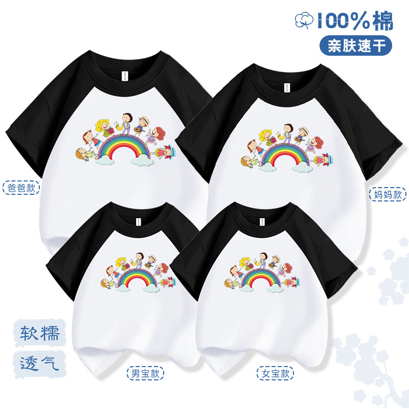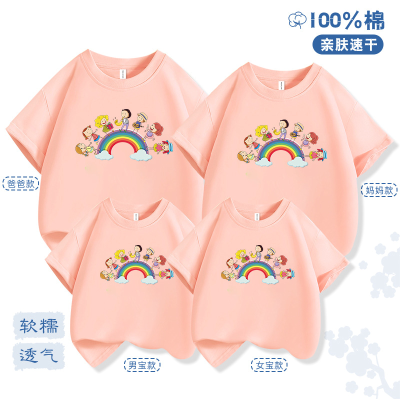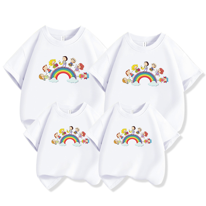 2025 хлопковая футболка с коротким рукавом для родителей и детей с радужным принтом, новая спортивная форма для занятий, выступлений и мероприятий