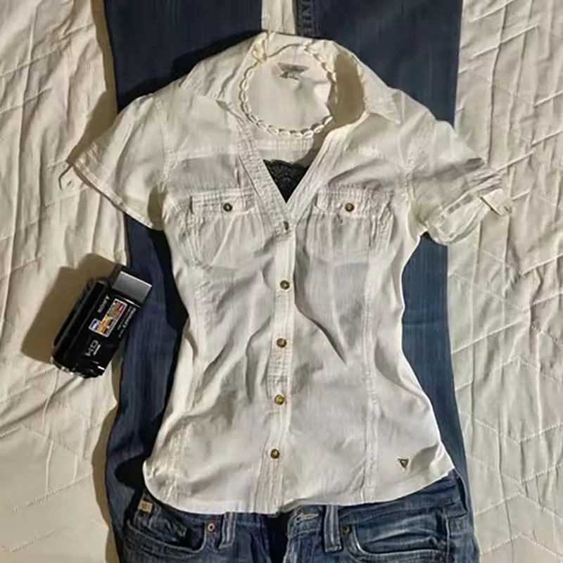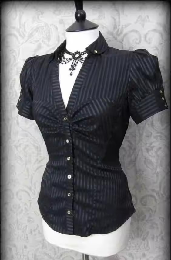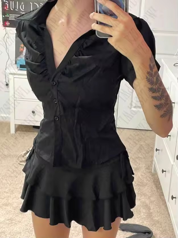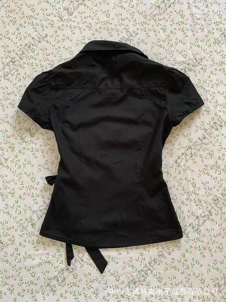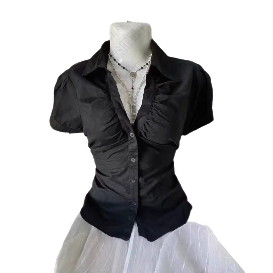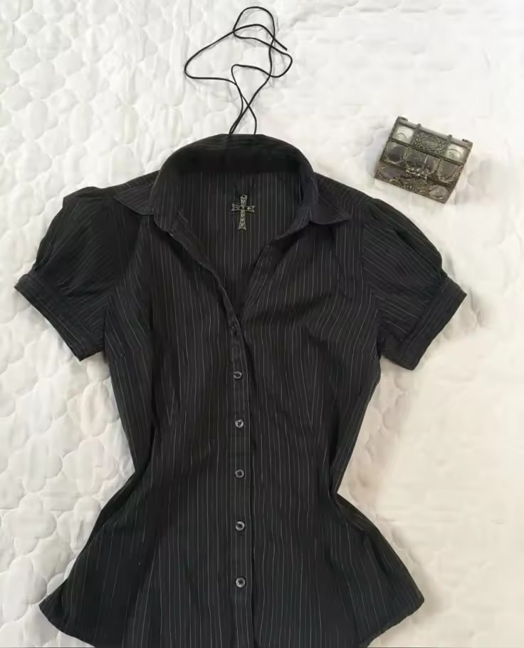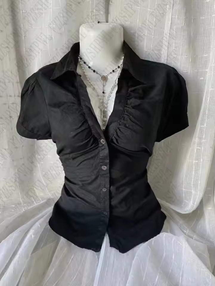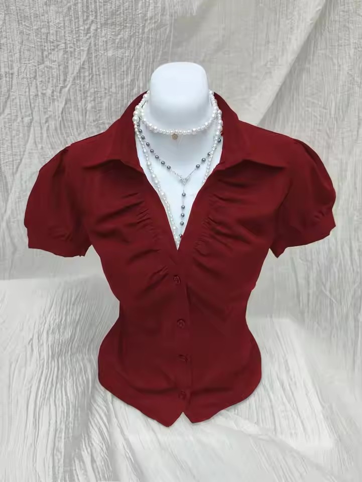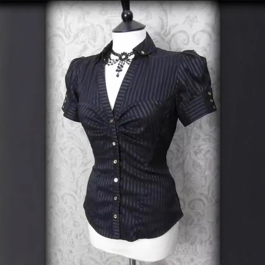 Внешняя торговля минималистичный темперамент элегантный поло-воротник с лацканами и складками однобортная пряжка тонная талия полосатая пригородная рубашка сплошной цвет