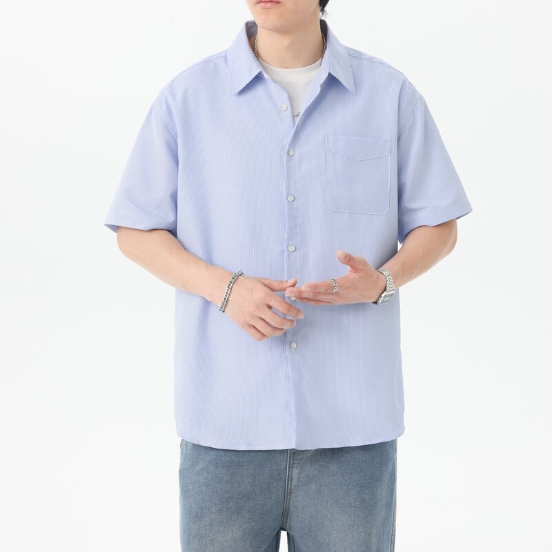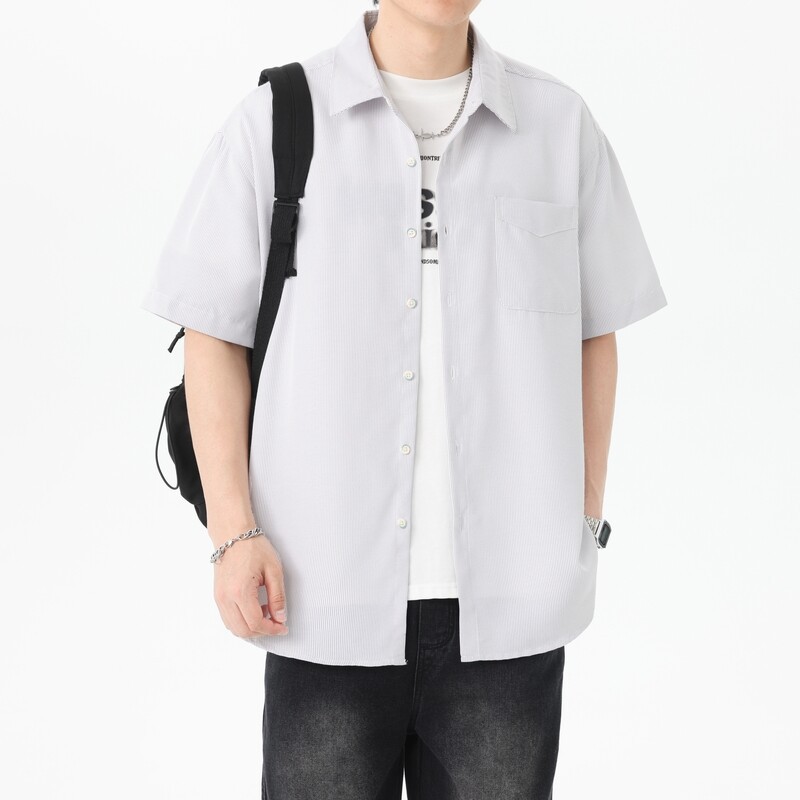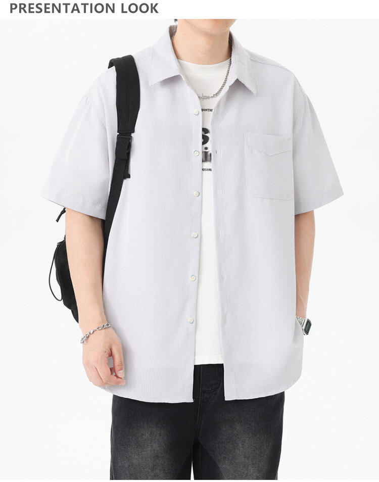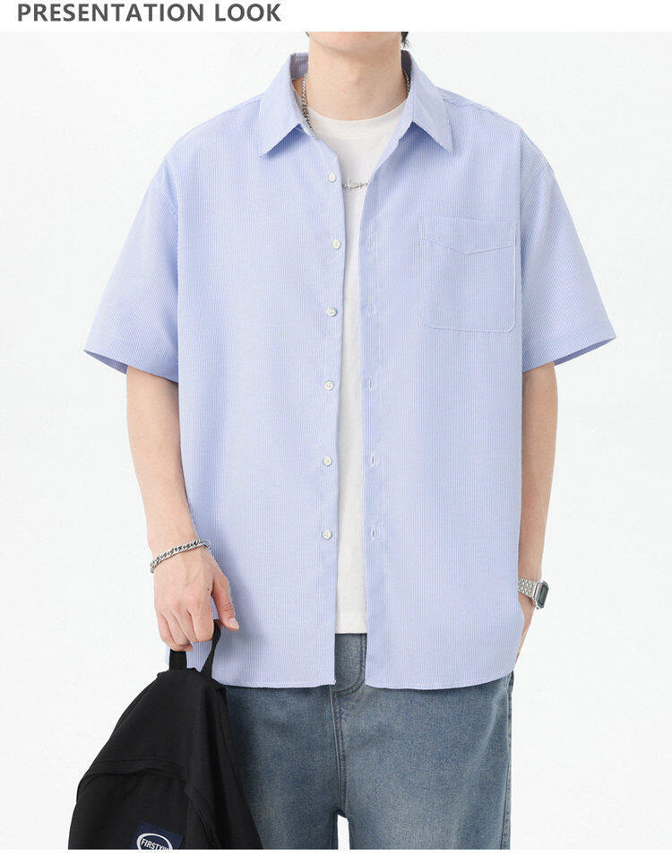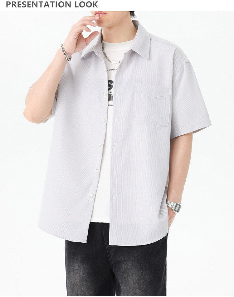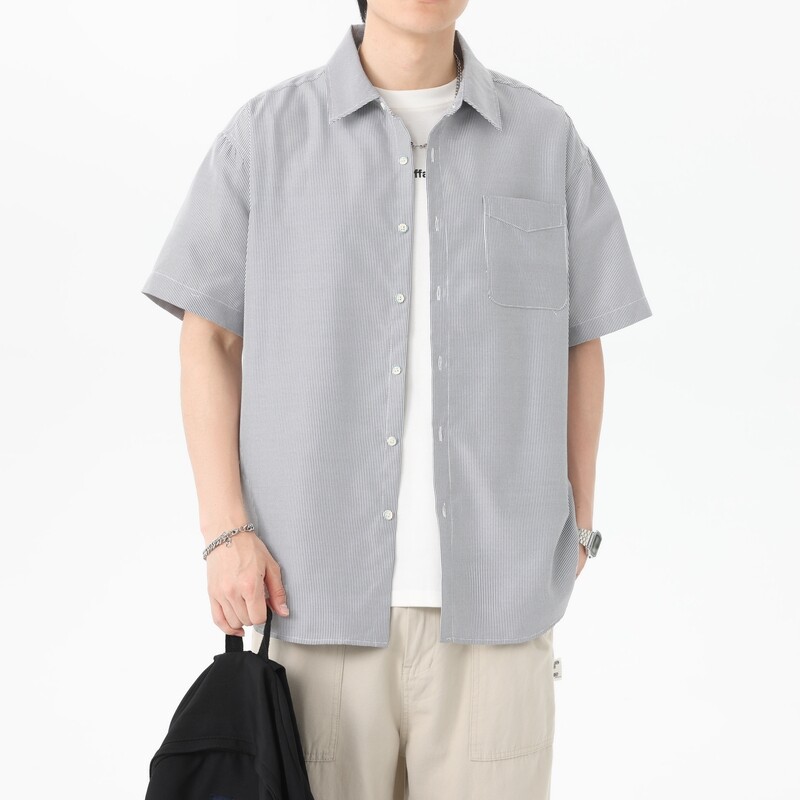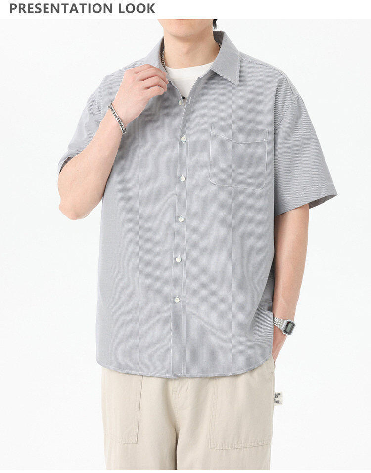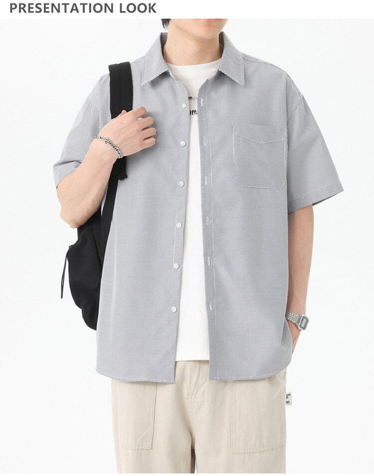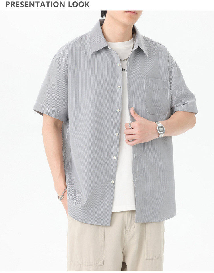 2025 летняя новая полосатая рубашка с коротким рукавом для мужчин, свободный модный корейский стиль, тонкая куртка, оптовая продажа от производителя