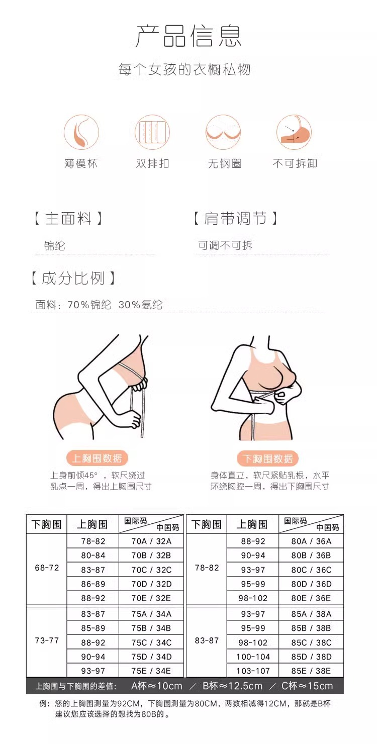 собрать; Без следов; дышащий; подталкивать вверх; Красивая спина; Регулируемый тип; удобный; Боковой сбор; Закройте вторичные груди; Большая грудь кажется маленькой