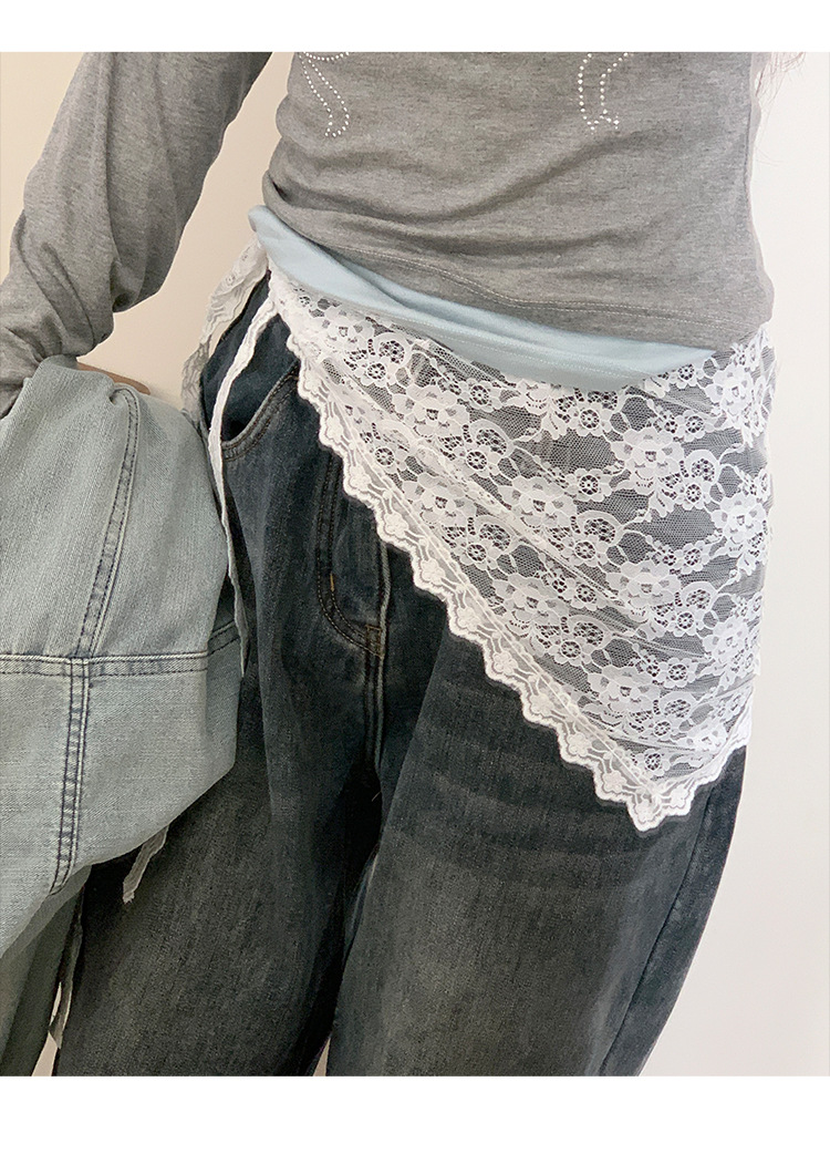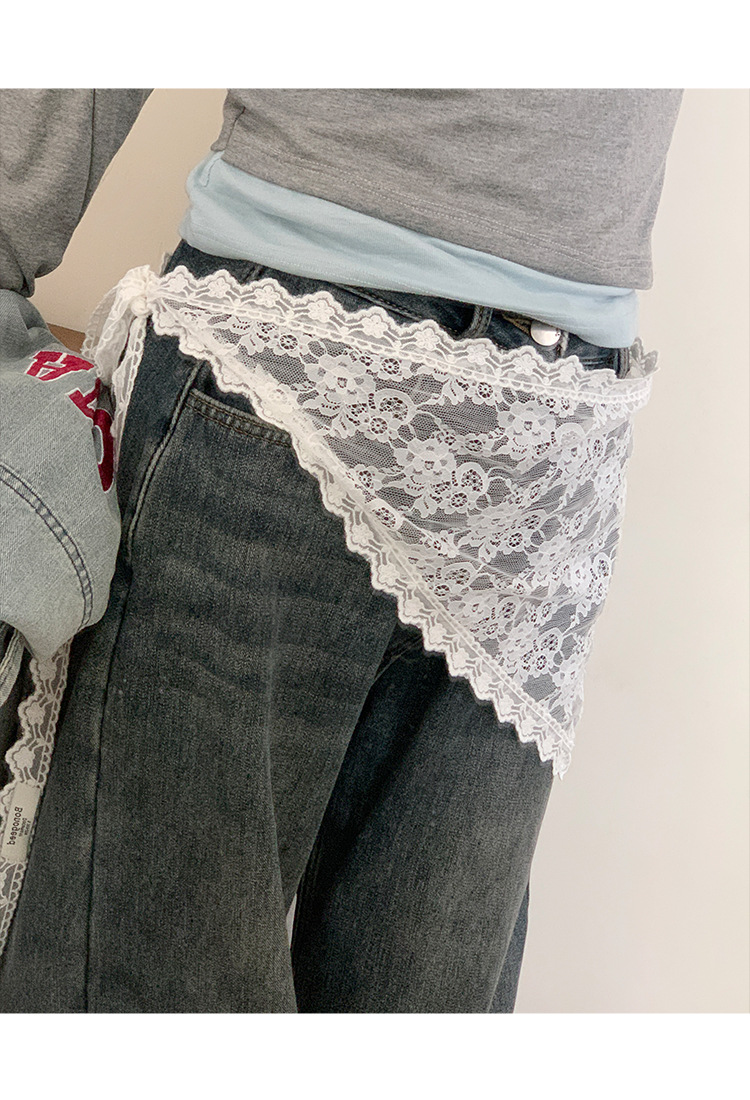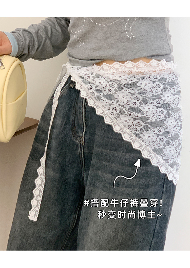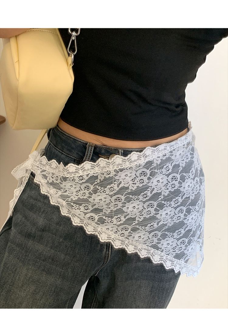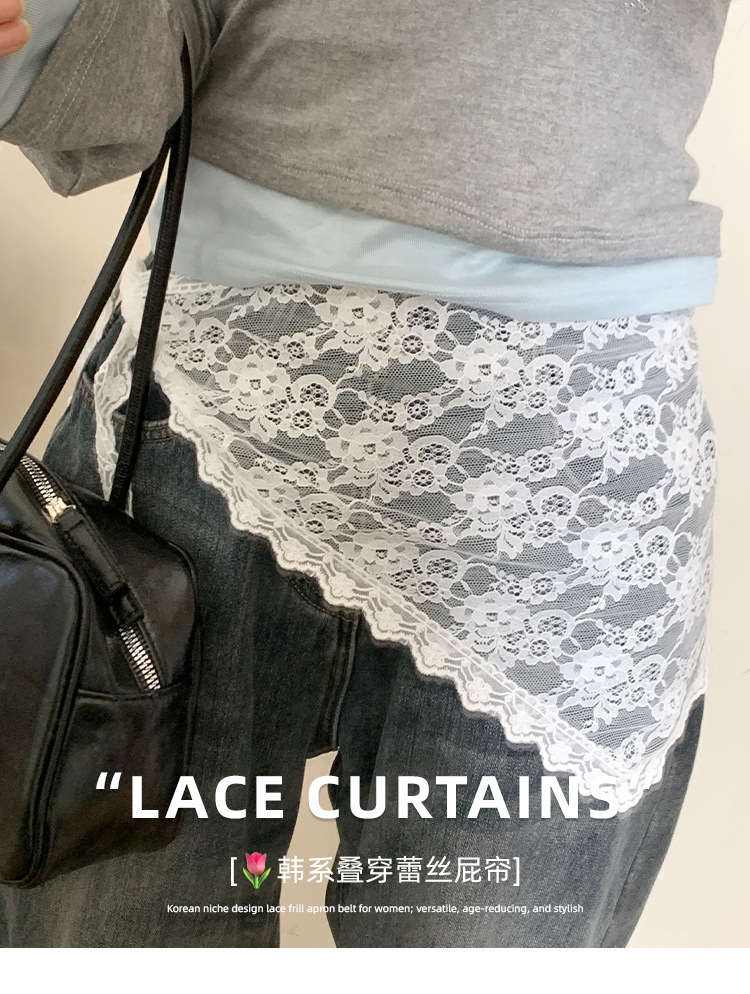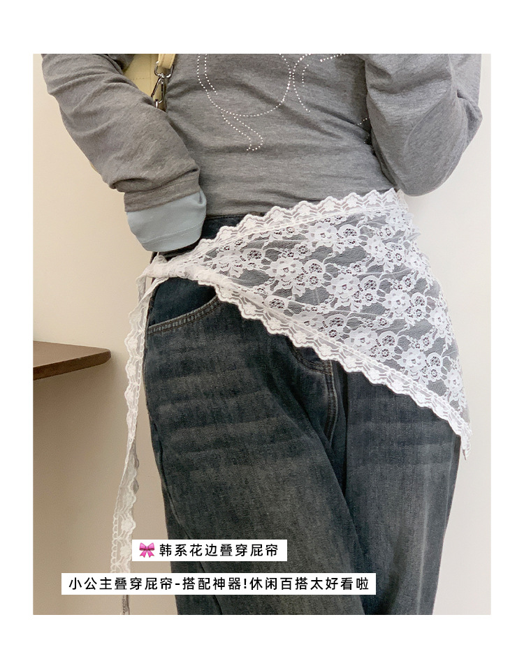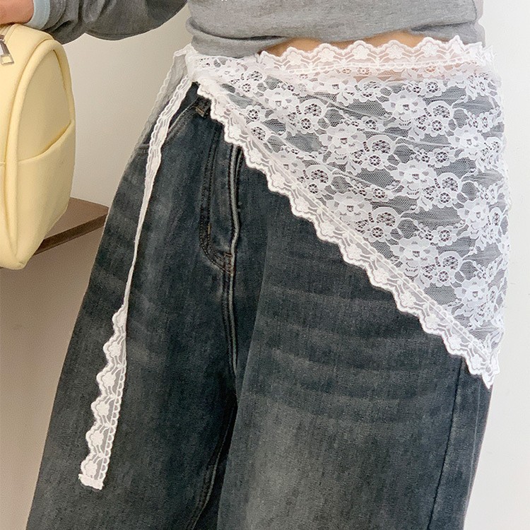 Белый кружевной треугольный шарф, занавеска на ягодицах, многослойное украшение на талии, нишевый дизайн, милая маленькая юбка, модный поясной шарф.