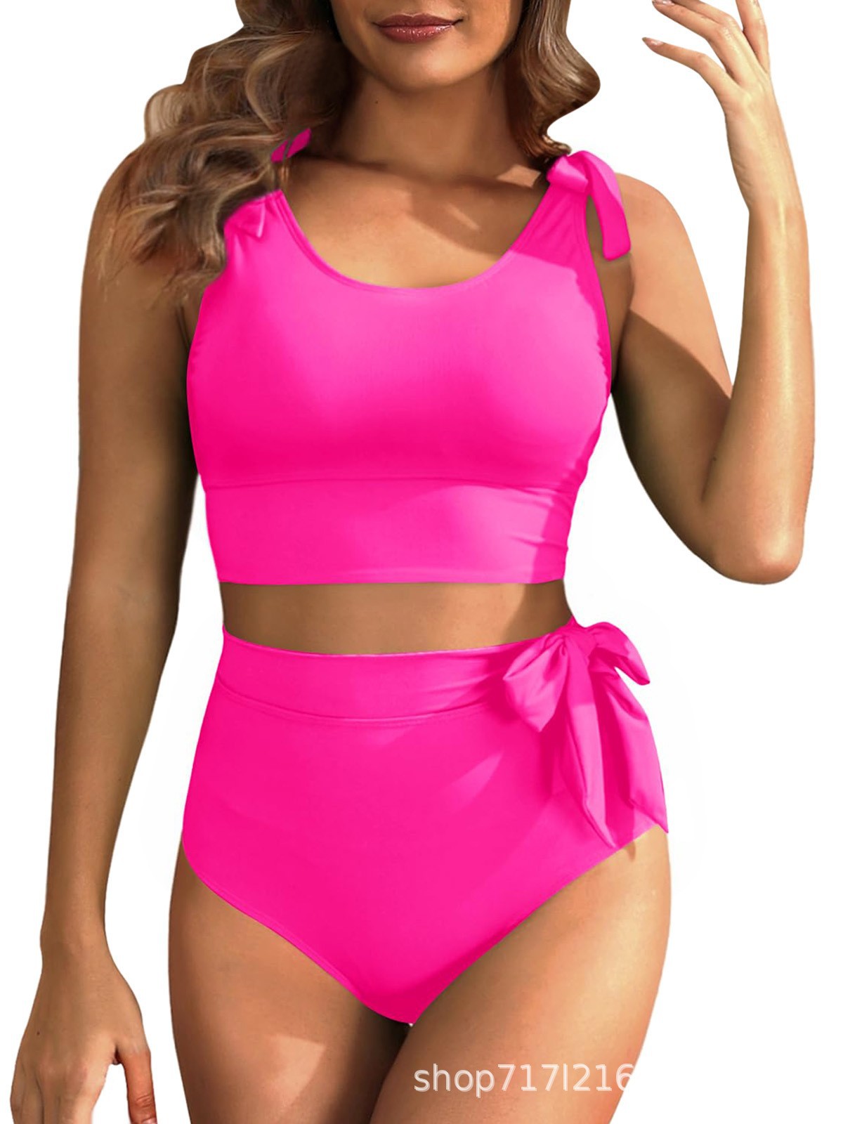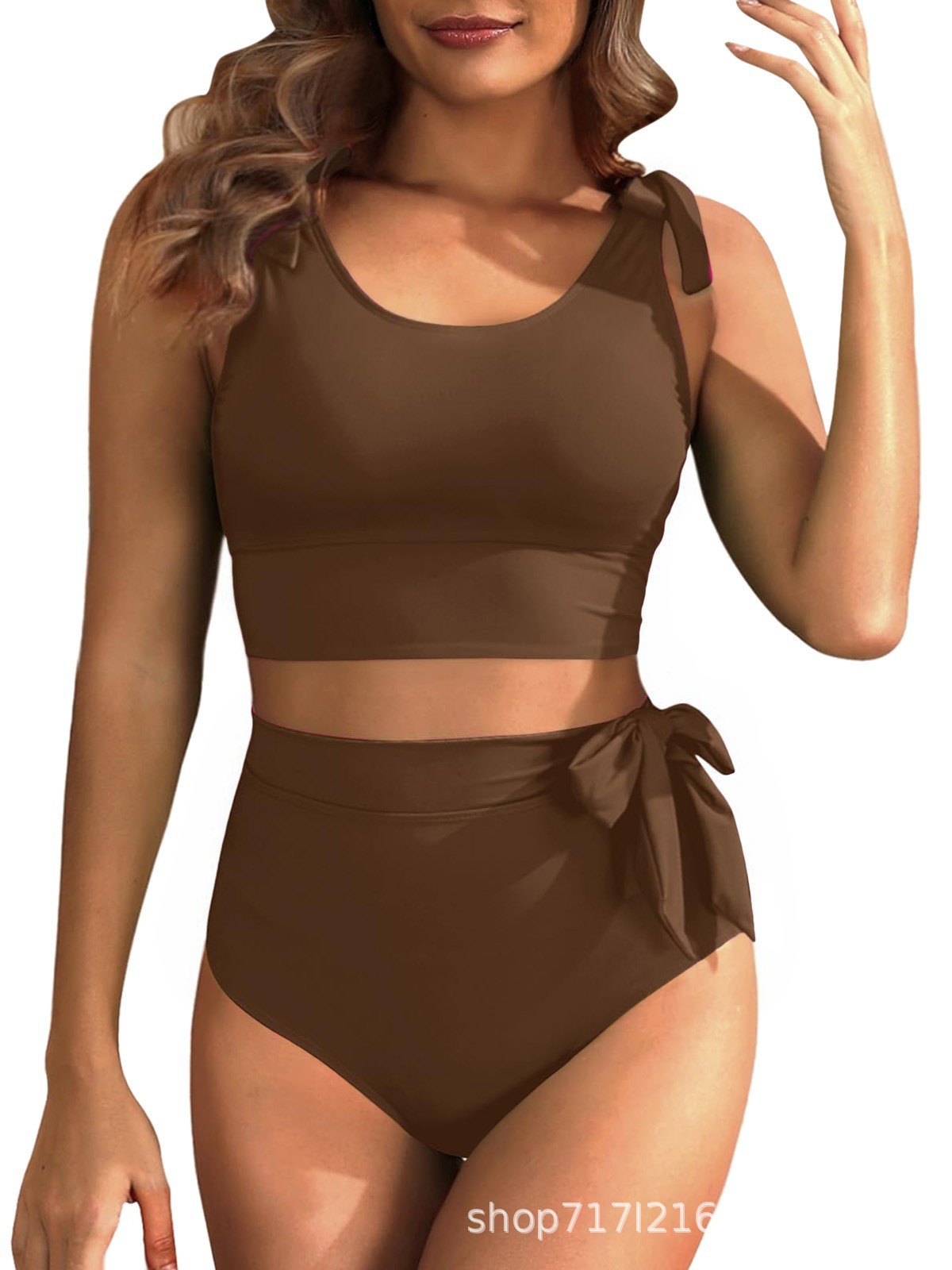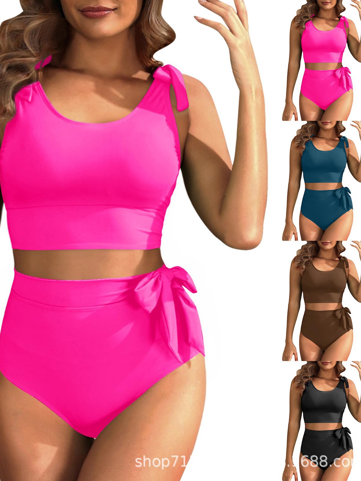 2025 Amazon новый однотонный модный раздельный бикини европейский и американский сексуальный высокий пояс спортивный купальник для женщин оптом