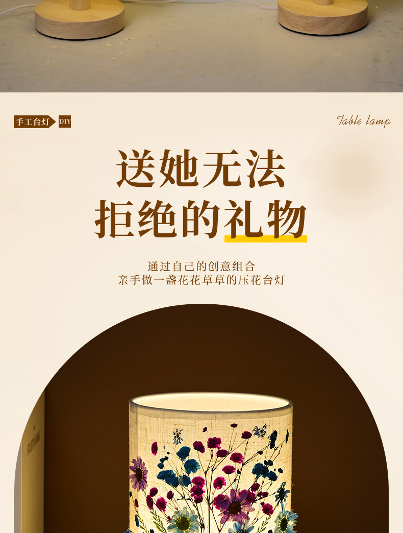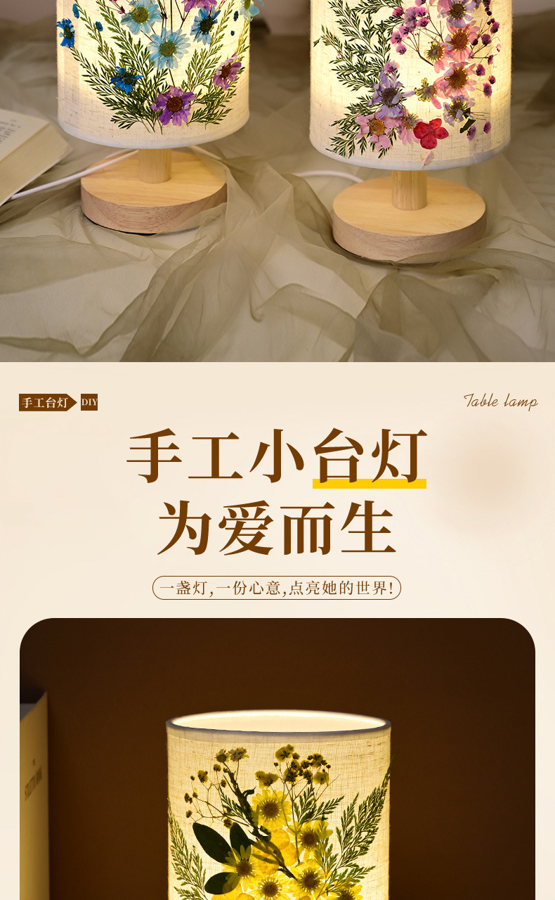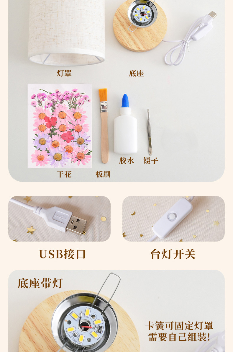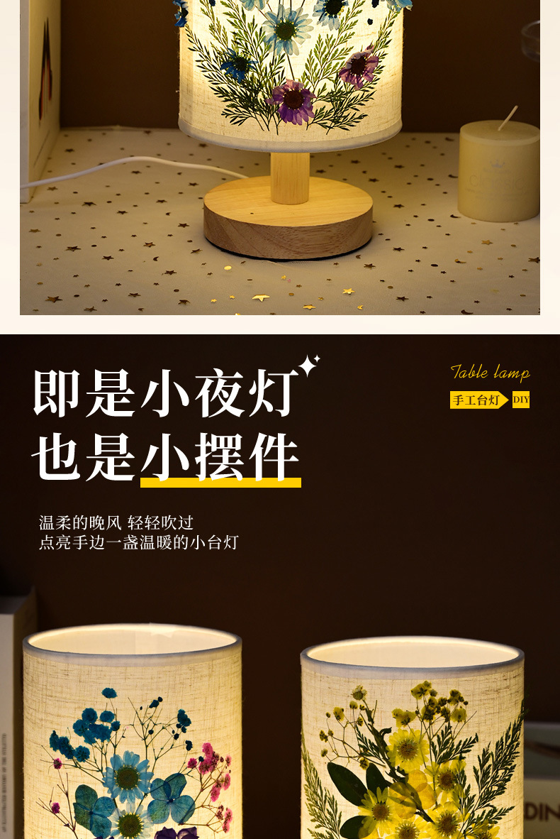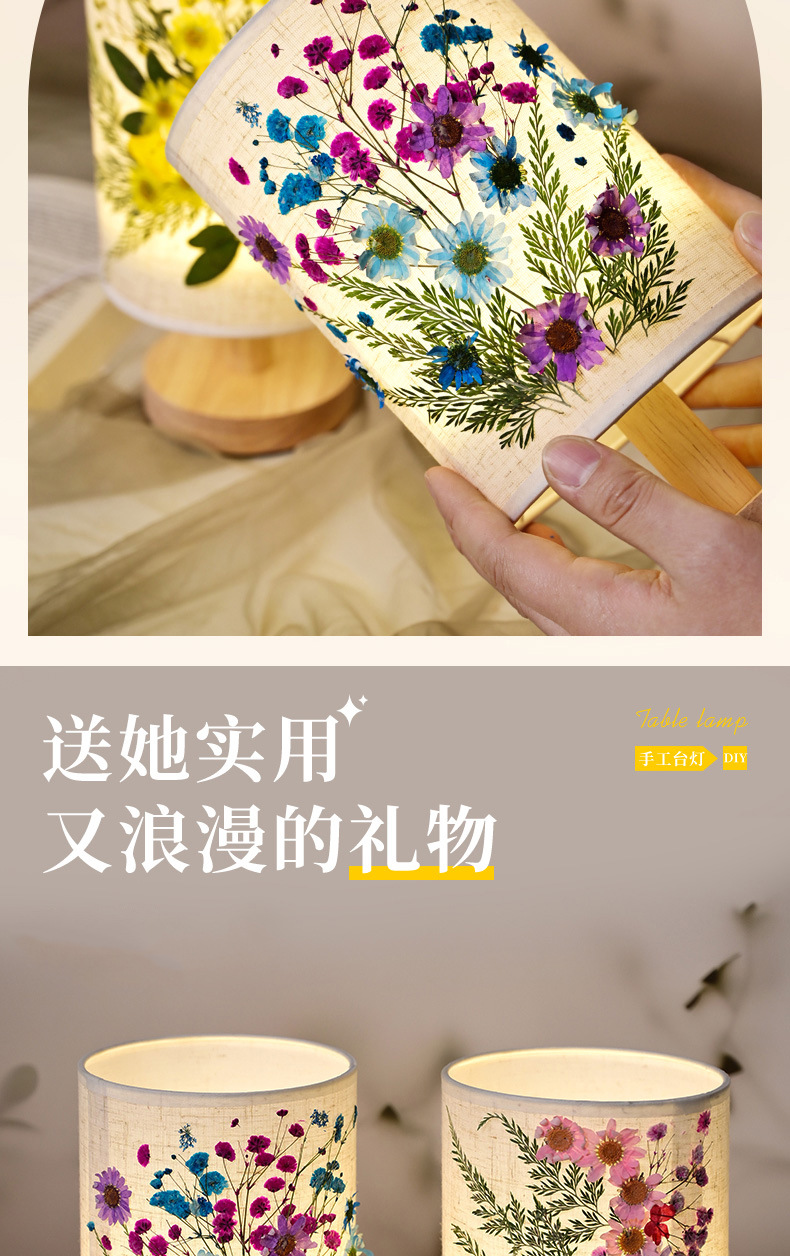 Набор для самостоятельного изготовления рельефной настольной лампы ручной работы: подарок на День матери, вечный цветок для детей, сухоцветы, ночник для спальни, атмосферный светильник.