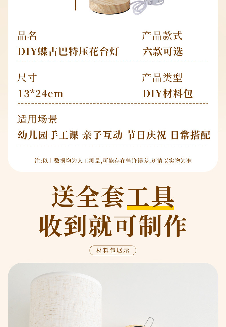 Примерно 12 комплектов настольных ламп с прессованными цветами (набор для самостоятельной сборки); Ин Чун Хун (Набор для создания настольной лампы с прессованными цветами своими руками - примерно 12 цветов); Яркие мечты (около 12 наборов материалов для рельефных настольных ламп); Точечные цветы (около 12 тисненых цветов, комплект материала для настольной лампы); Язык прекрасных цветов (набор материалов для создания около 12 рельефных настольных ламп с цветочным дизайном); Ритм синих перьев (набор для создания настольной лампы с прессованными цветами своими руками - примерно 12 цветов); Гинкго Блесс (Набор для создания настольной лампы с прессованными цветами своими руками - примерно 12 цветов); Ромашка (Набор для создания настольной лампы с прессованными цветами своими руками - примерно 12 цветов); Ромашковые цветы (Набор для создания настольной лампы из прессованных цветов своими руками - примерно 25 цветов); Розовое и фиолетовое глазурованное стекло (примерно 25 цветов, набор для создания настольной лампы с прессованными цветами своими руками); Пурпурная мечта синего цвета (набор материалов для изготовления рельефной настольной лампы, около 25 штук); Набор для создания настольной лампы «Очаровательные шепоты цветов» (примерно 12 цветов, включает подарочный пакет); Набор для создания настольной лампы «Синий перьевой ритм» (примерно 12 цветов, включает подарочный пакет); Гинкго Сиси, примерно 12 комплектов материалов для настольной лампы (включая подарочный пакет); Набор для создания настольной лампы Ying Chun Hong (примерно 12 цветов, включает подарочный пакет); Набор для создания настольной лампы «Радужная мечта» своими руками (примерно 12 цветов) - включает подарочный пакет; Набор для создания настольной лампы своими руками - дизайн "Цветочный Дизайн" (примерно 12 цветов, включает подарочный пакет); Набор для создания настольной лампы «Ромашки своими руками» (примерно 12 ромашек, включает подарочный пакет); Набор для создания настольной лампы «Ромашки своими руками» (около 25 ромашек) - включает подарочный пакет; Фиолетовая мечта синего цвета, примерно 25 стеблей, набор для создания настольной лампы своими руками (включает подарочный пакет); Набор для создания настольной лампы своими руками - Радужные фиолетовые стеклянные цветы (примерно 25 штук) - Включает подарочный пакет; Настольная лампа-бабочка смешанные волосы (упаковка материала)); Бабочка (набор материалов для настольной лампы Diangu); Цветы и брокад (набор материалов для настольной лампы Diegu); Фламинго (набор материалов для настольной лампы Diegu); Маленькое сердце (набор материалов для настольной лампы Digu); Цветочная бабочка (включая подарочный пакет); Цветы и парча (включая подарочный пакет); Маленькая любовь (включая подарочный пакет); Фламинго (подарочный пакет в комплекте); пустая настольная лампа; Одиночная тиснёная ромашка (около 12 тиснёных ромашек); Один красивый цветочный язык с тиснением (около 12 цветов с тиснением); Одиночный рельефный звездный узор (примерно 12 рельефных цветов); Одинарный подвеска с тиснением синего пера (около 12 тисненых цветов); Одиночный тисненый цветной сон (около 12 тисненых цветов); Одиночный тисненый гинкго (около 12 тисненых цветов); Одиночные рельефные цветы распускаются весной (около 12 рельефных цветов).; Одинарное тиснение фиолетового цвета мечты (около 25 цветов 