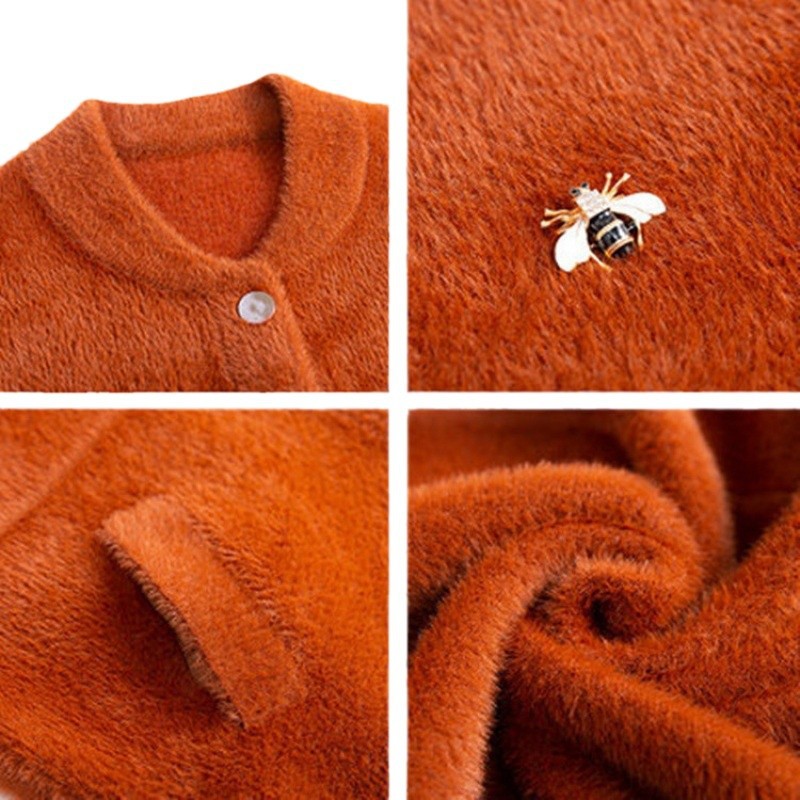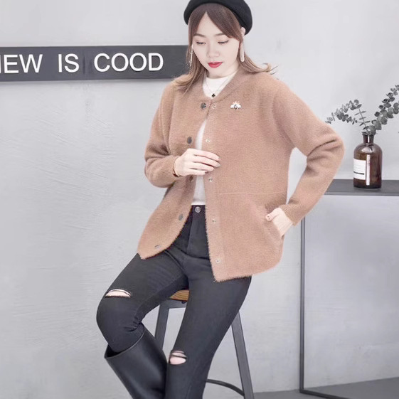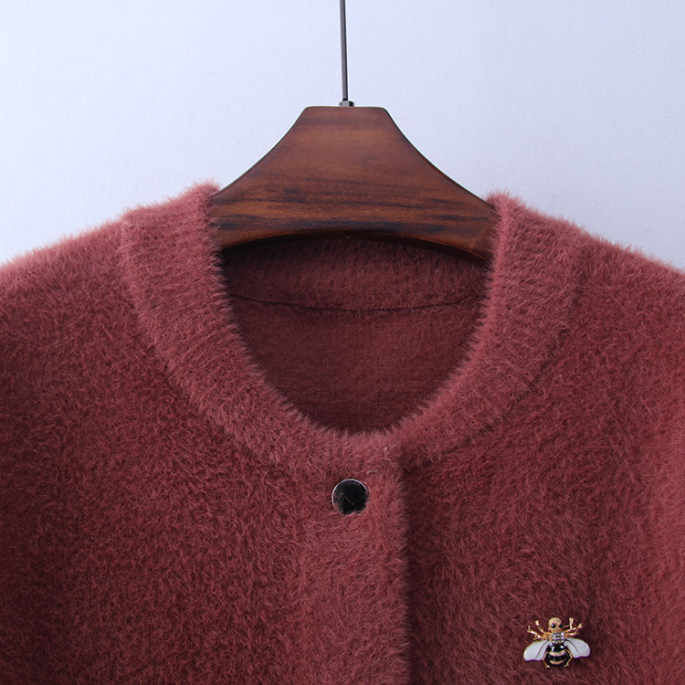 B2/45/49 маленькая пчела эластичная женская куртка кардиган осенний и зимний свободный маленький вязаный свитер