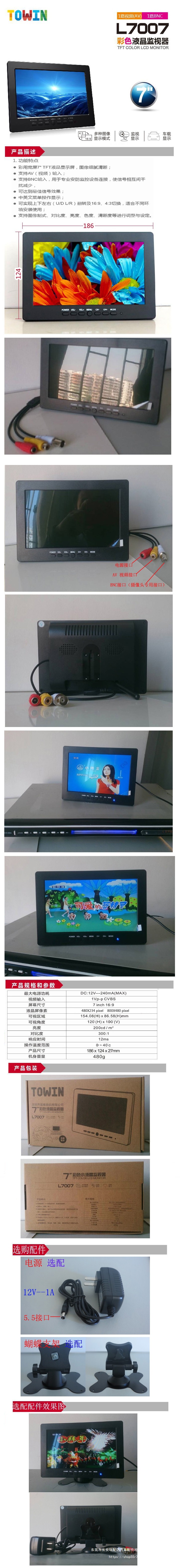 高清显示器BNC/7寸监控安防/工业车载迷你液晶小电视显示屏