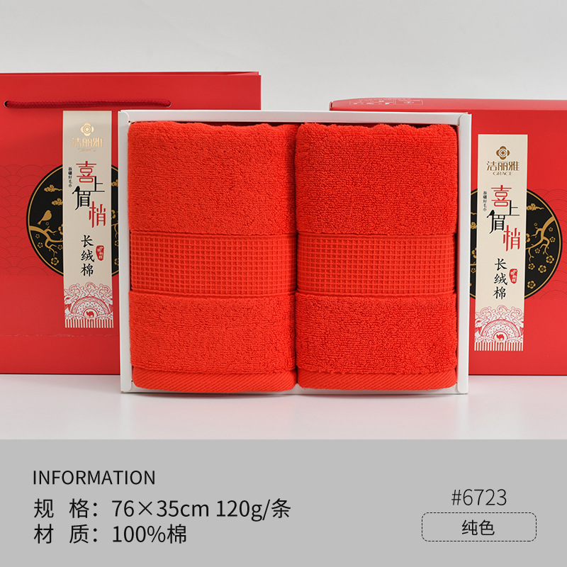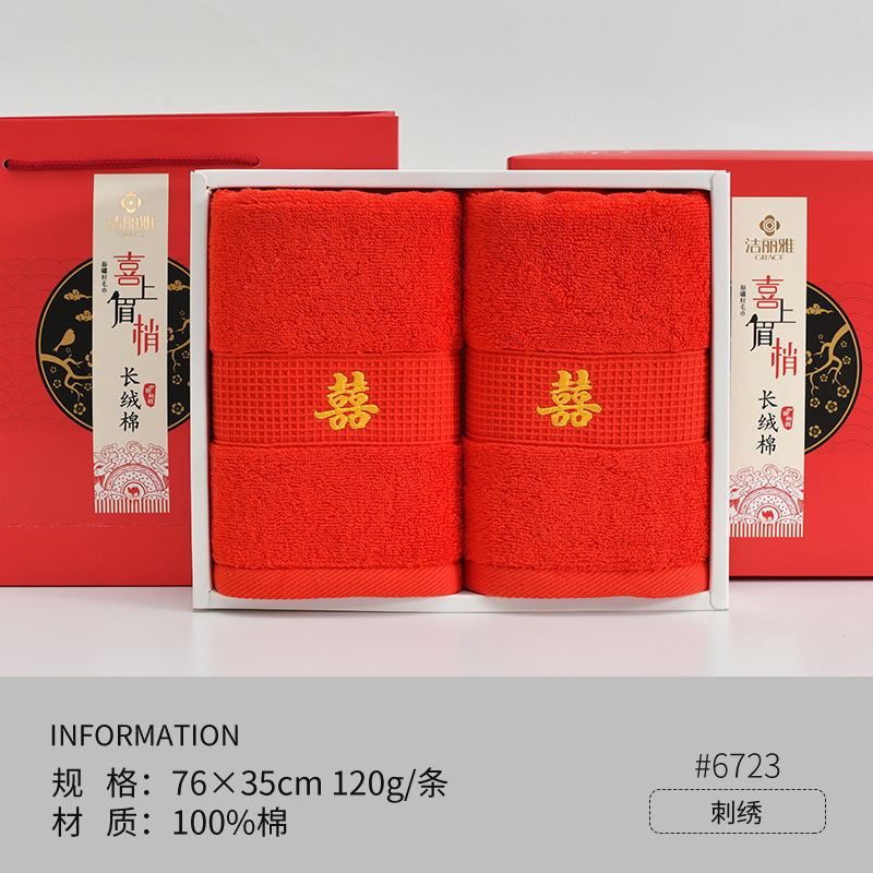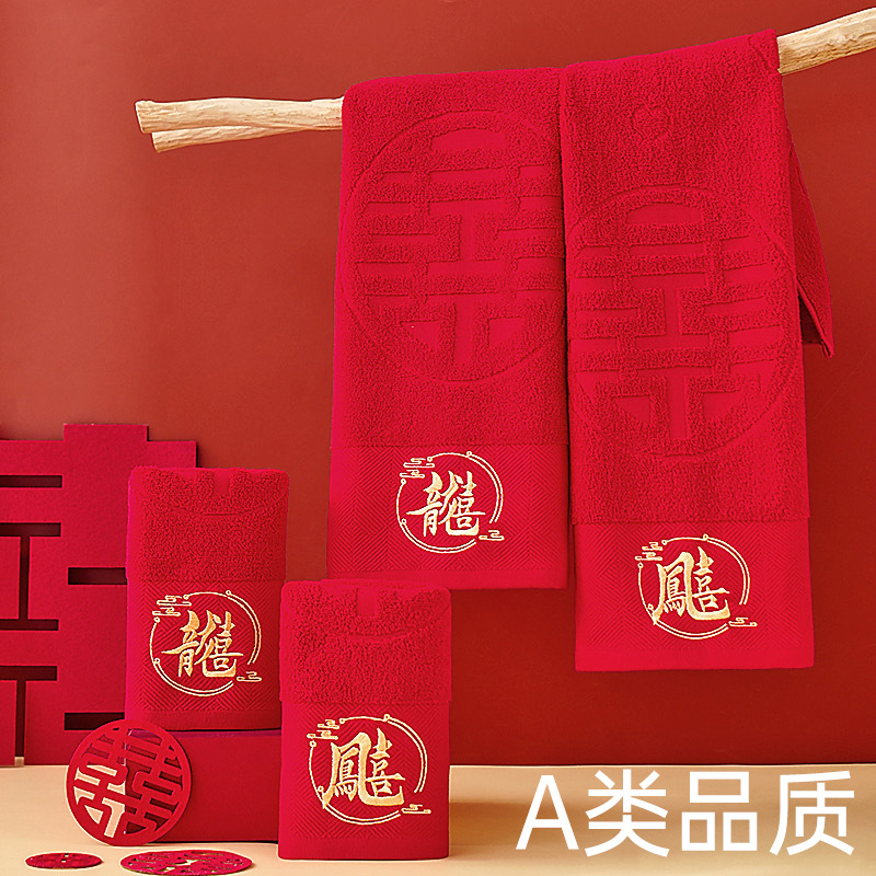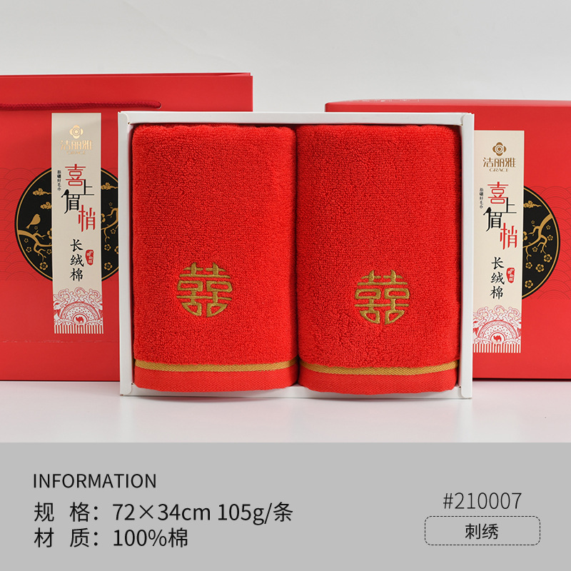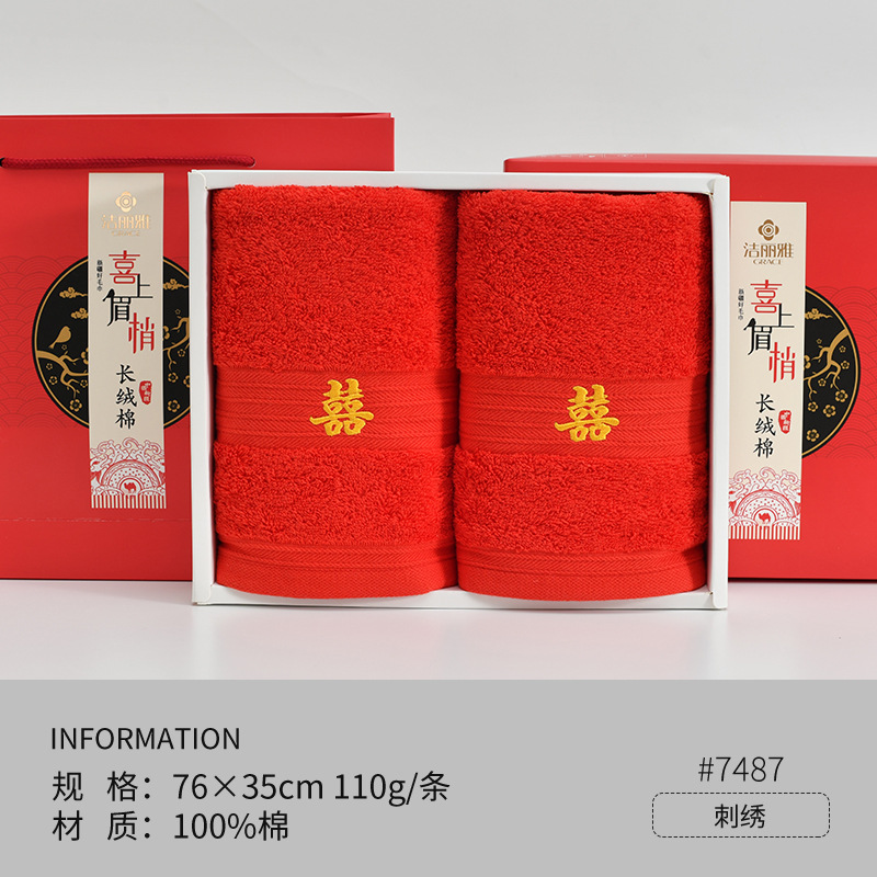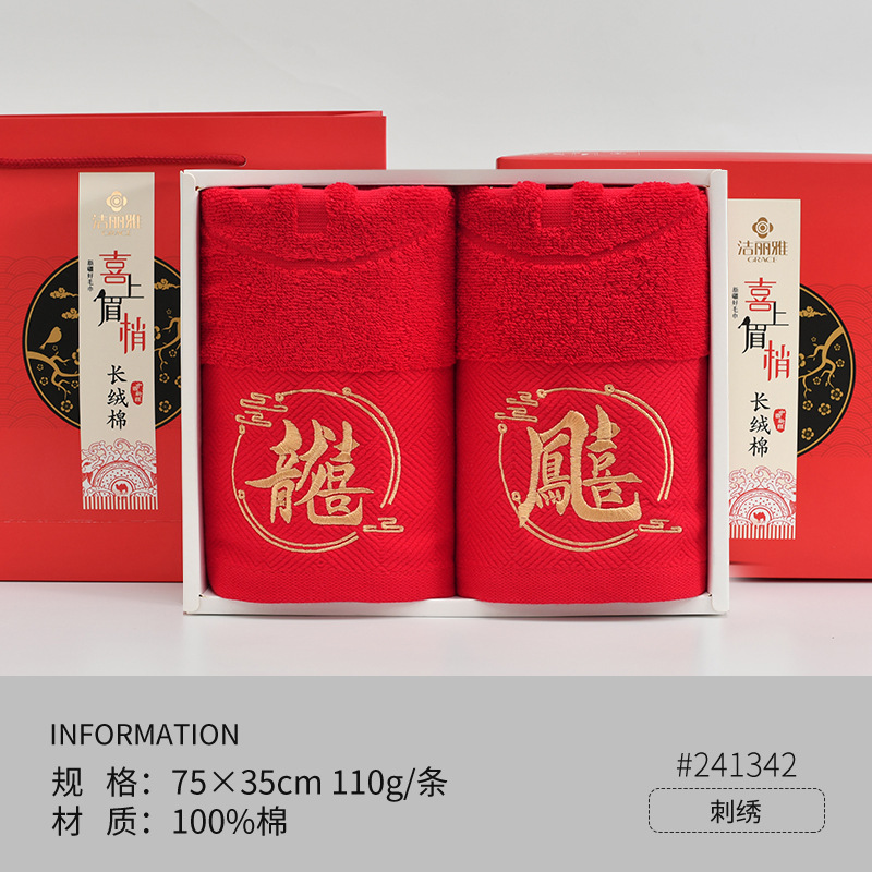 Полотенца для свадьбы пара хлопчатобумажных красных праздничных подарков с подарками для свадебных подарков из хлопка