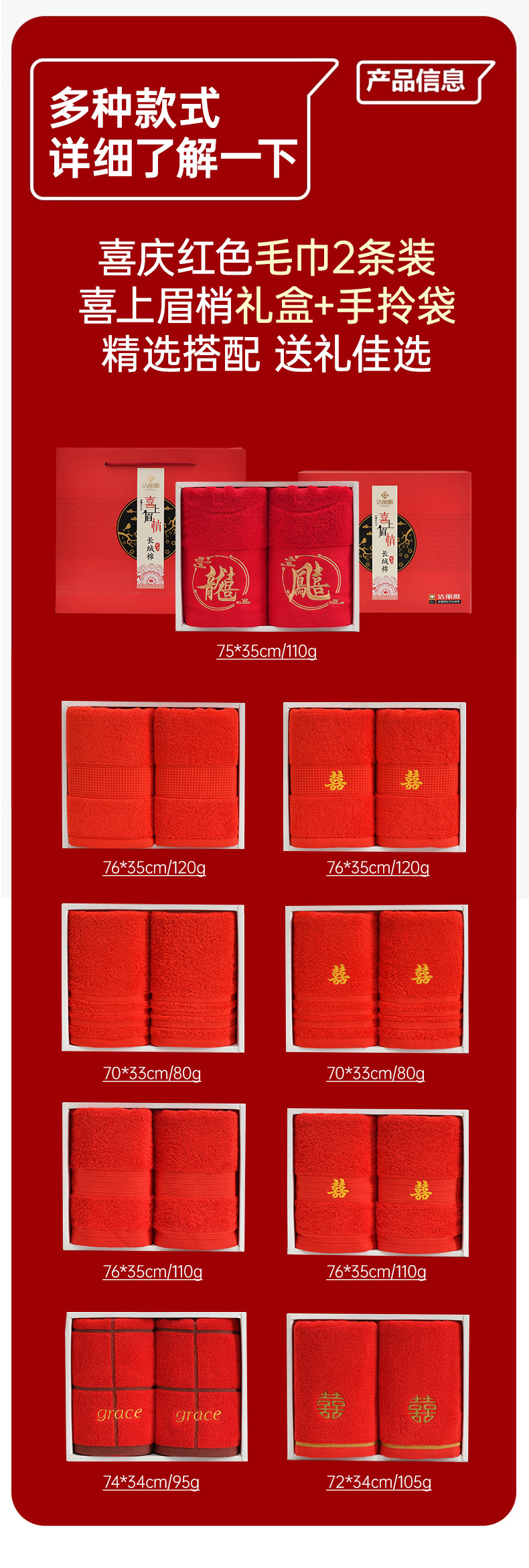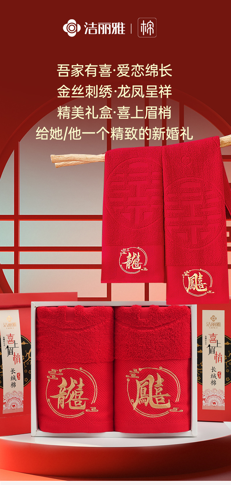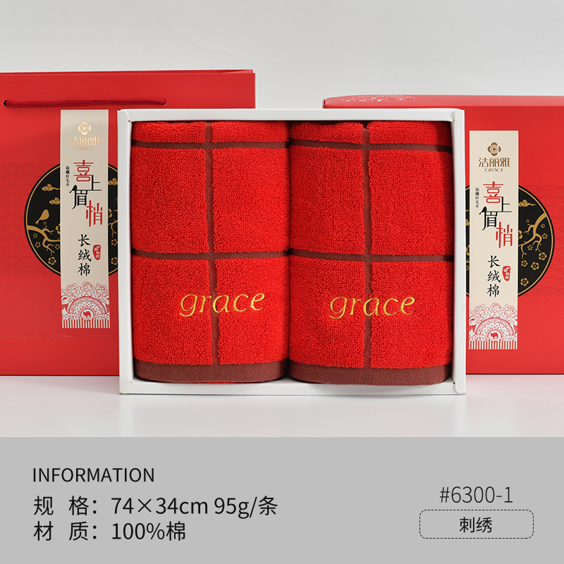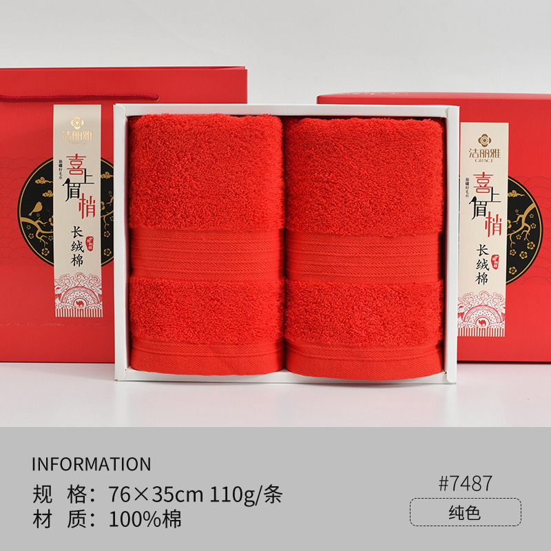Полотенца для свадьбы пара хлопчатобумажных красных праздничных подарков с подарками для свадебных подарков из хлопка