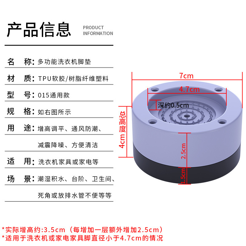 Индивидуальные круглые подставки для стиральных машин, противоскользящие и противоударные подушечки, универсальная основа для холодильника, оптовая настройка от производителя.