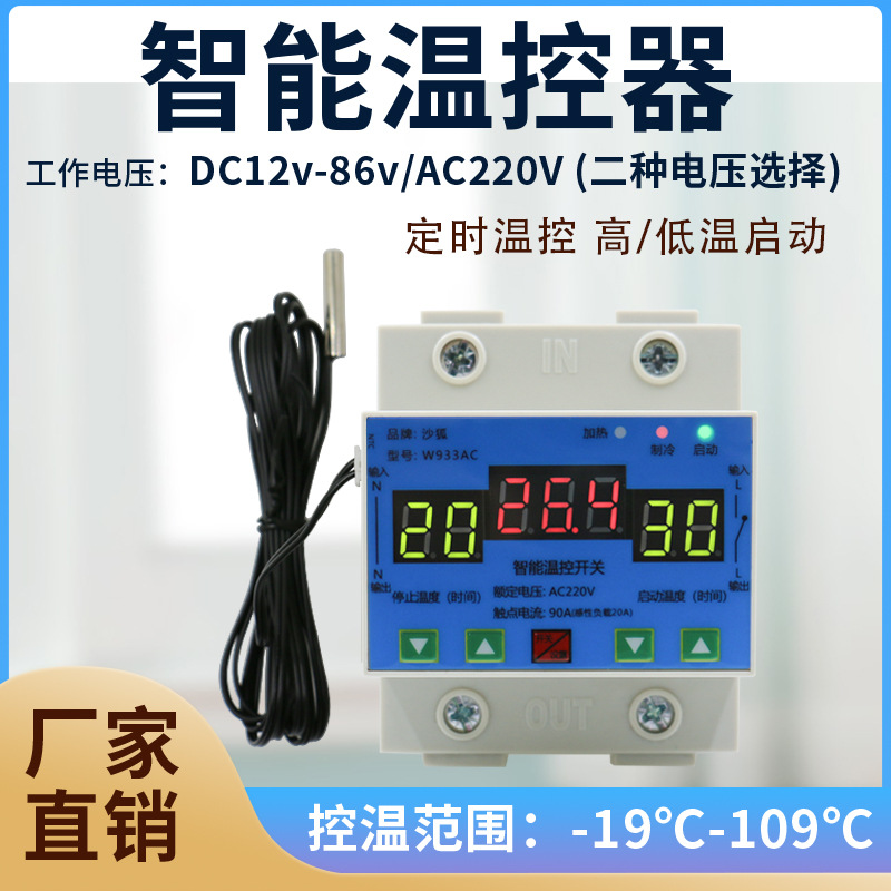 W933 цифровой контроль температуры, мощный переключатель контроля температуры, полностью автоматический регулятор температуры, регулируемая температура 12 В 220 В