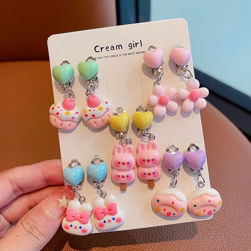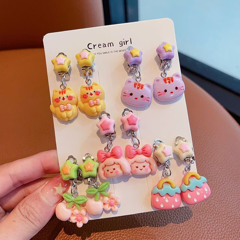 Детские зажимы для ушей для девочек и младенцев без пирсинга, противоболевые поддельные серьги, супер милые и милые серьги с героями мультфильмов принцессы, серьги и серьги