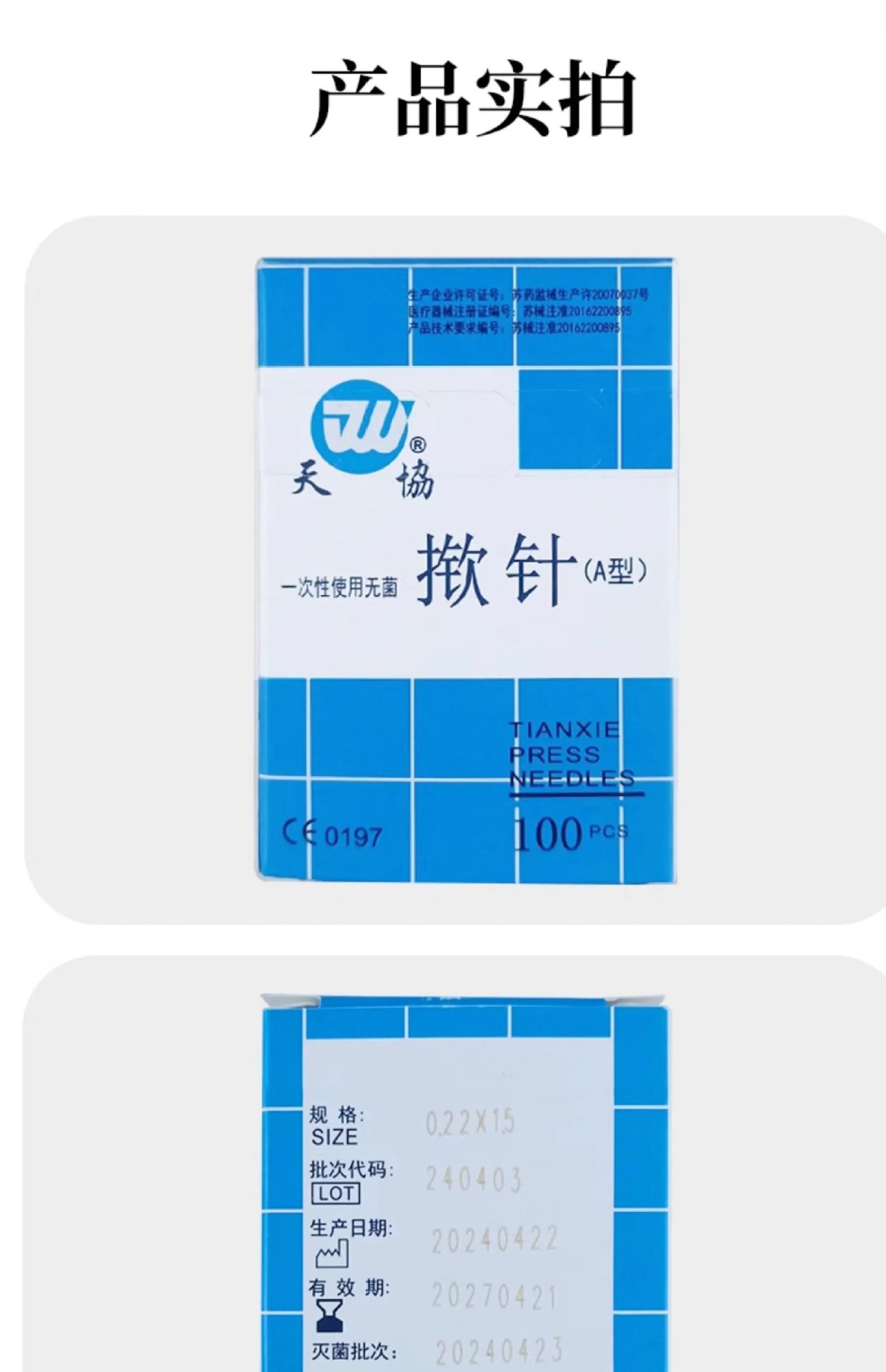 Иглы для акупунктуры Tianxie, одноразовые, стерильные, для больниц, для ушей, для акупунктуры, встраиваемые, самоклеящиеся, для медицинского и домашнего использования.
