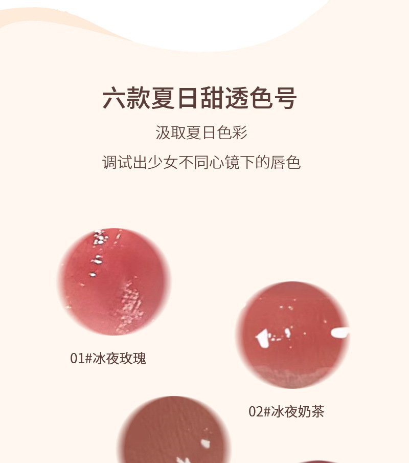 Блеск для губ Yinyun Ice Night Mirror — это увлажняющий, водно-глянцевый блеск для губ, который придает губам объем, осветляет цвет лица, долговечен и не выцветает, создавая естественный вид.