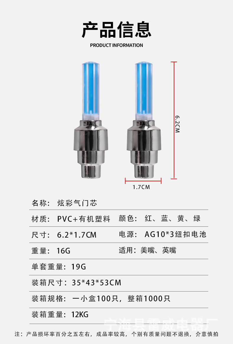 Красный индикатор клапана одиночный; Синий индикатор клапана, одиночный; Зеленый индикатор клапана одиночный; Желтый индикатор клапана одиночный; Цветная лампа клапана одинарная; Примечание: все они в парах.; Примечание: 50 пар в коробке.