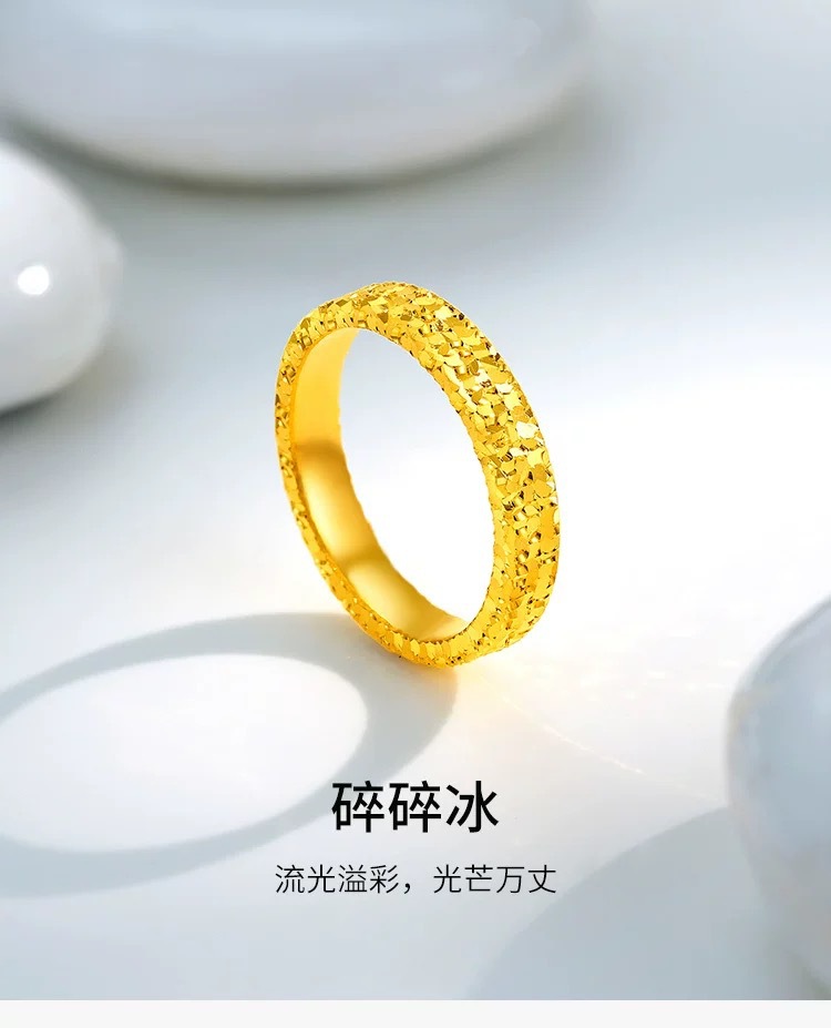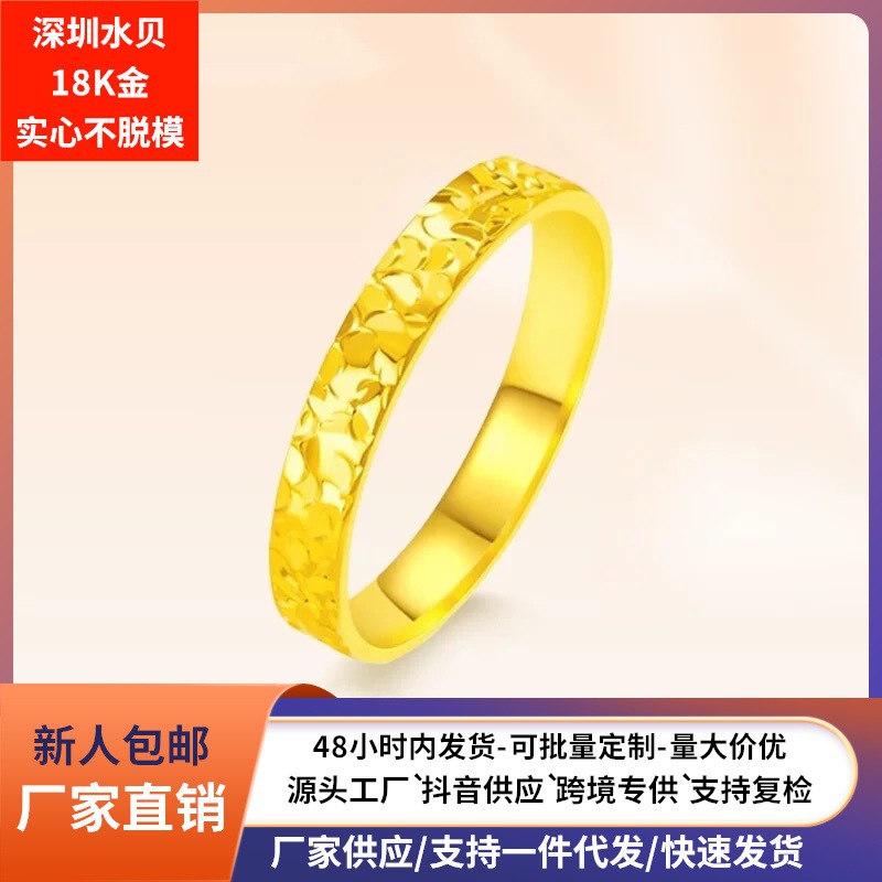 Золотое кольцо 18к AU750, цельное, без формования, гладкое, популярное, изысканное, с узором «крошеный лёд», оптом.