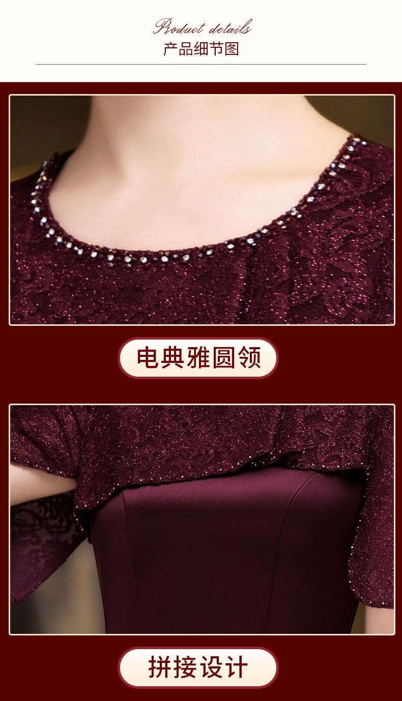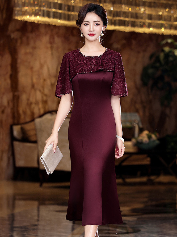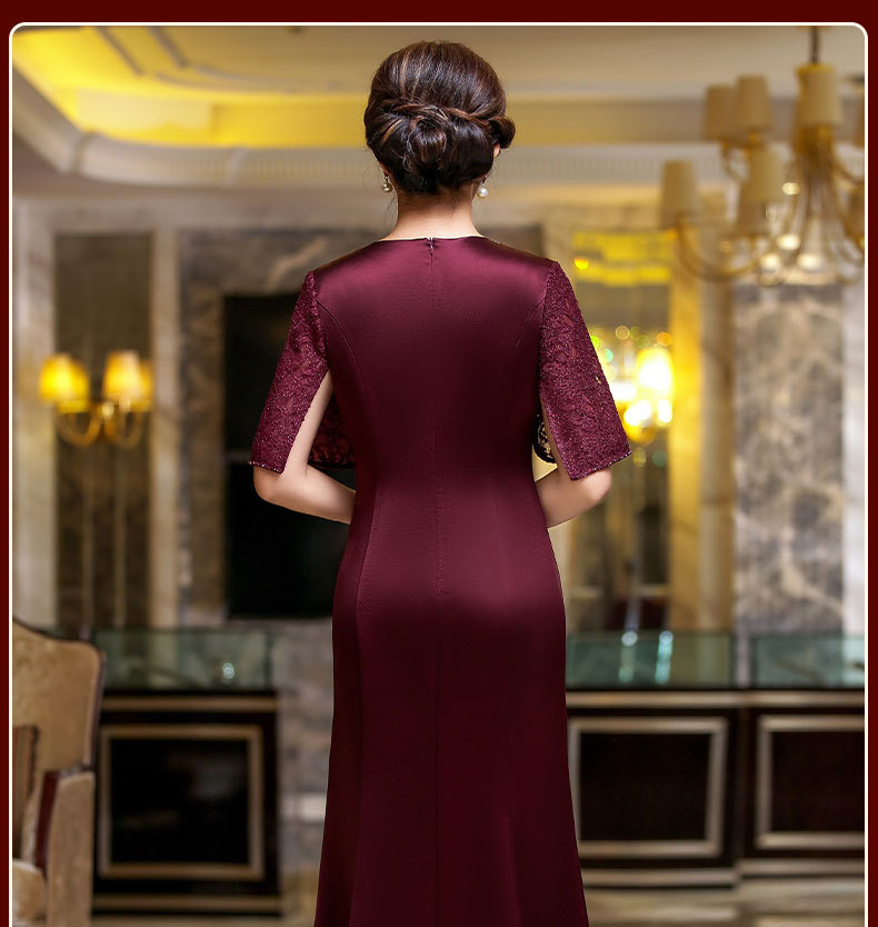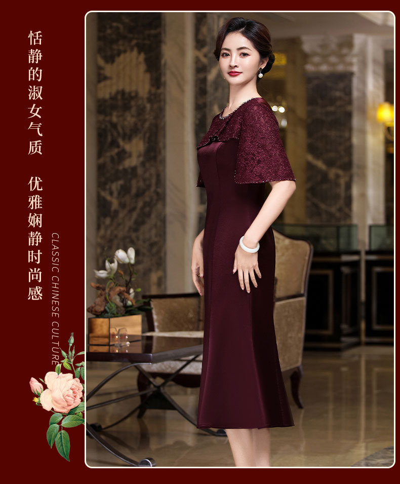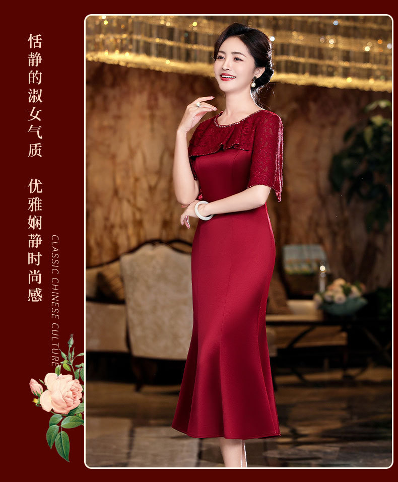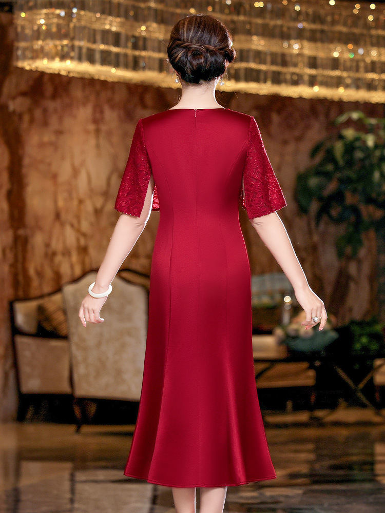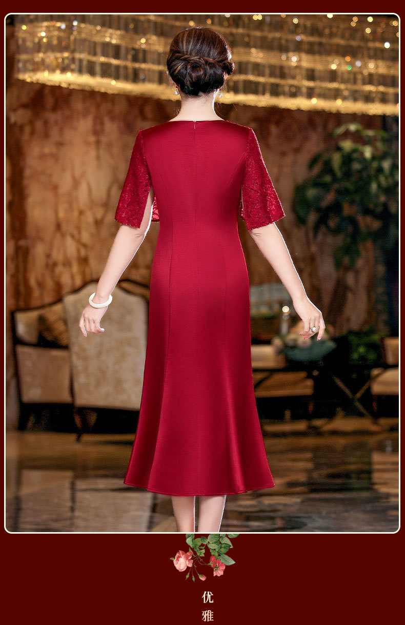 Летнее платье для свадебного банкета для свекрови, высококачественное, в стиле лёгкой роскоши, нишевое, новое, модное, из ацетата с кружевными вставками и юбкой-русалкой.