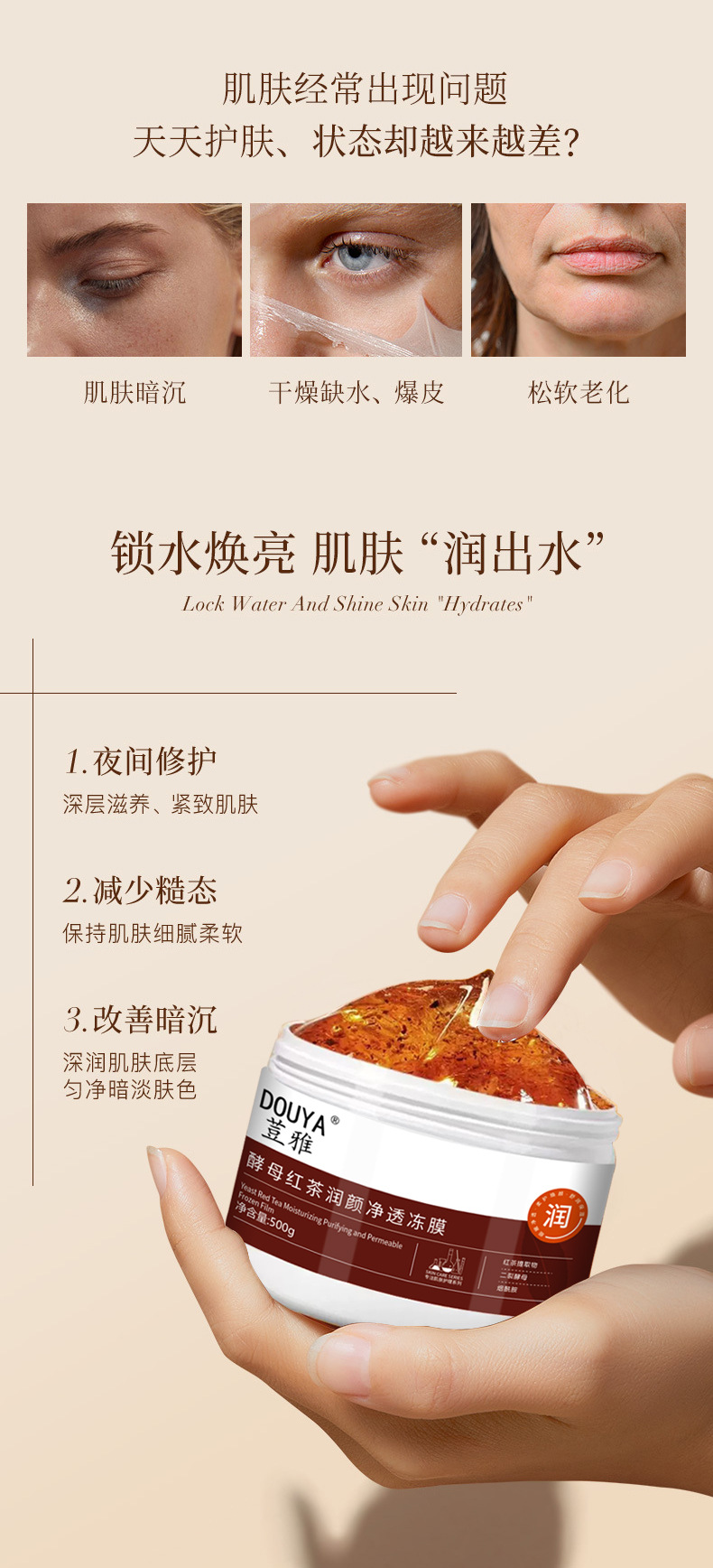 Маска-желе для лица с черным чаем, большая упаковка, нелипкая, ночное восстановление, увлажняющая и питательная, для интенсивного увлажнения.