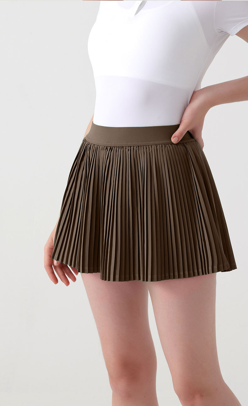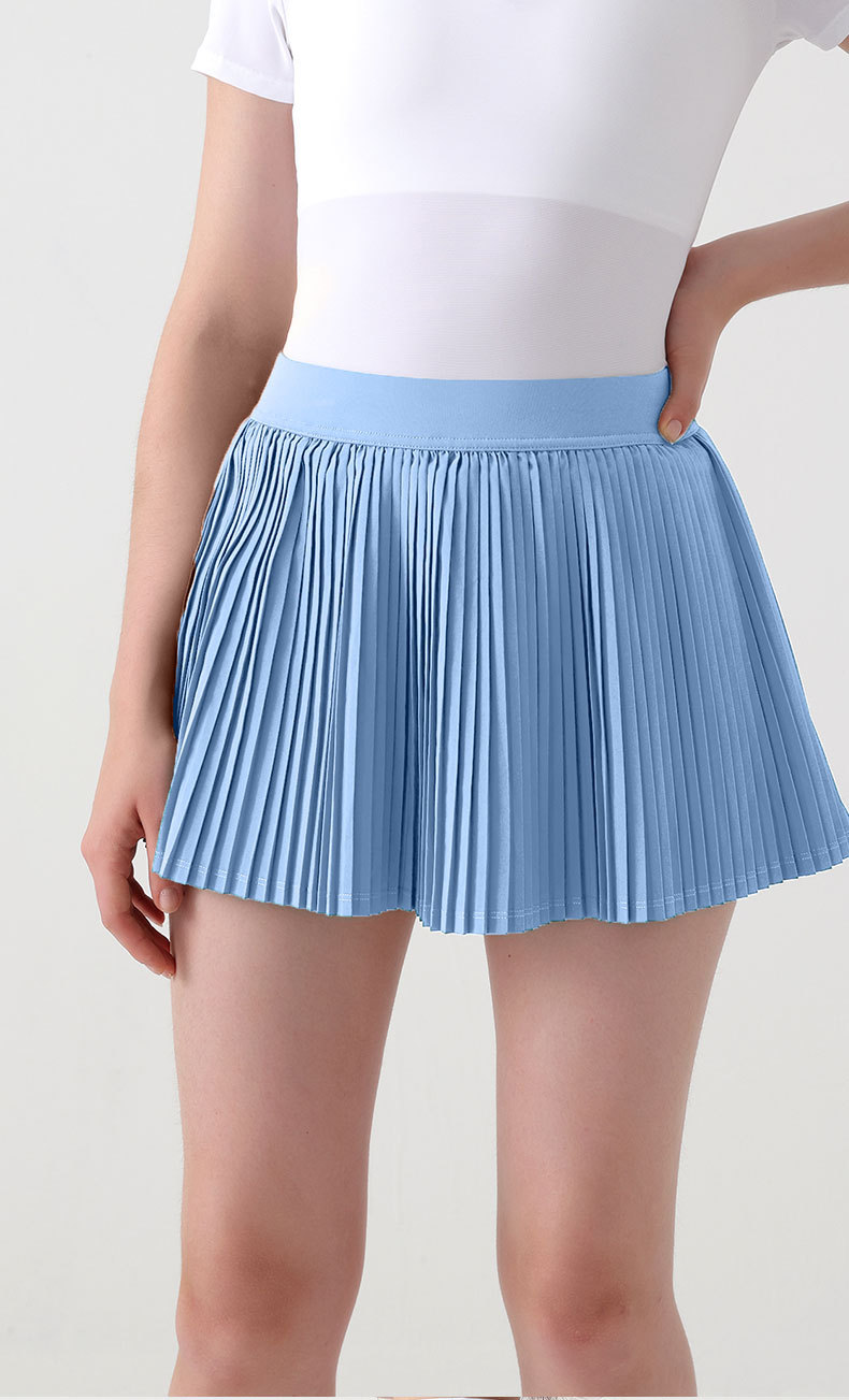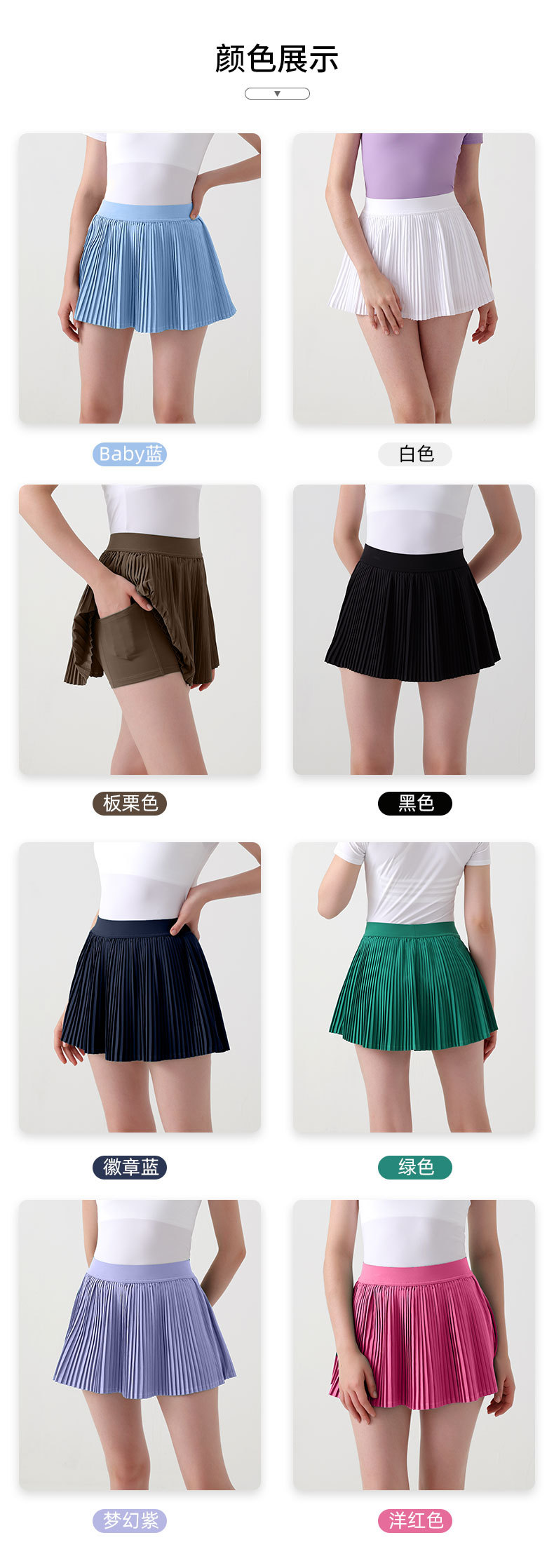 Новая теннисная юбка Женская спортивная юбка Поддельные две плиссированные юбки с высокой талией